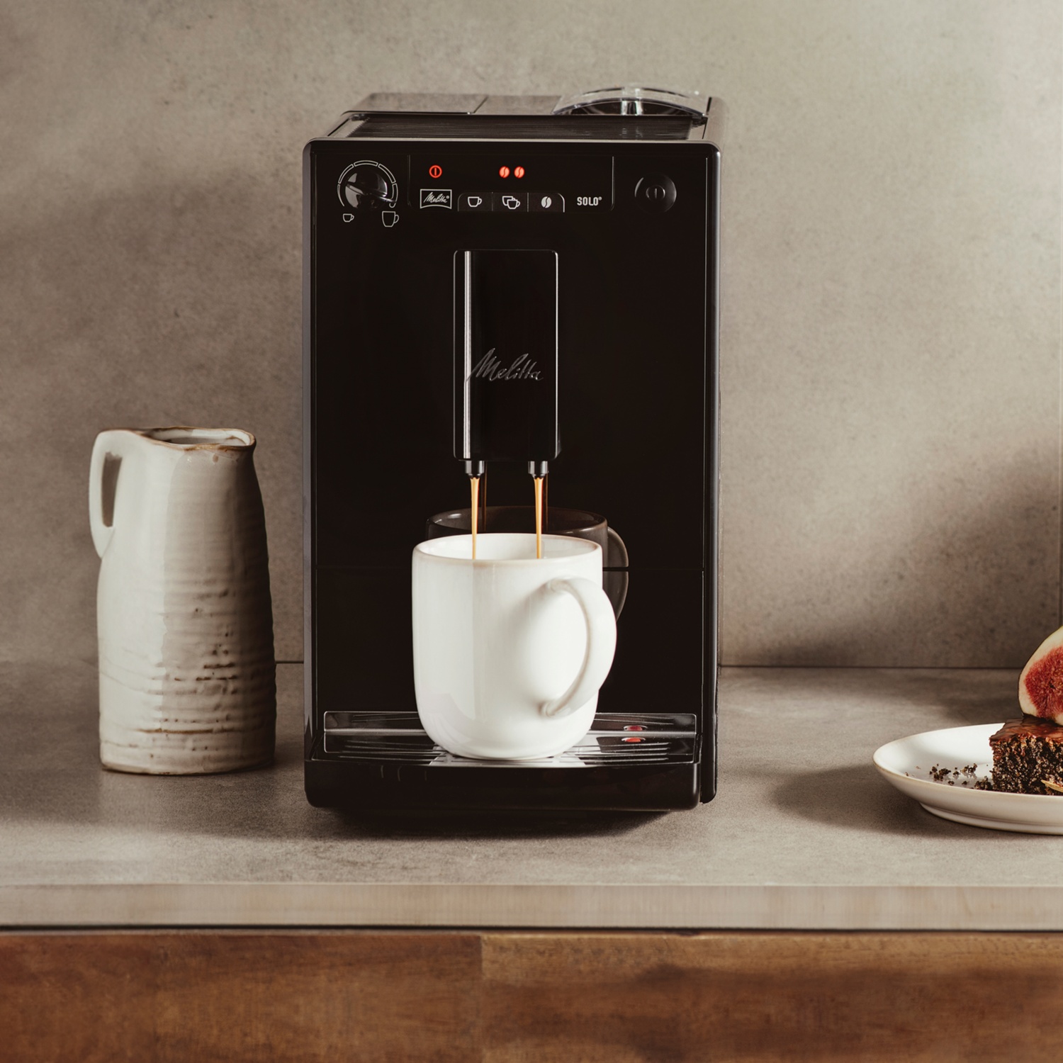 • mit nur einem Knopfdruck zwei Tassen Kaffee gleichzeitig zubereiten. Die Solo® ist der perfekte Kaffeevollautomat für die Verarbeitung von ganzen Kaffeebohnen. Dieser elegante und kleine Genuss-Bereiter liefert unverfälschte Geschmacks-Highlights.