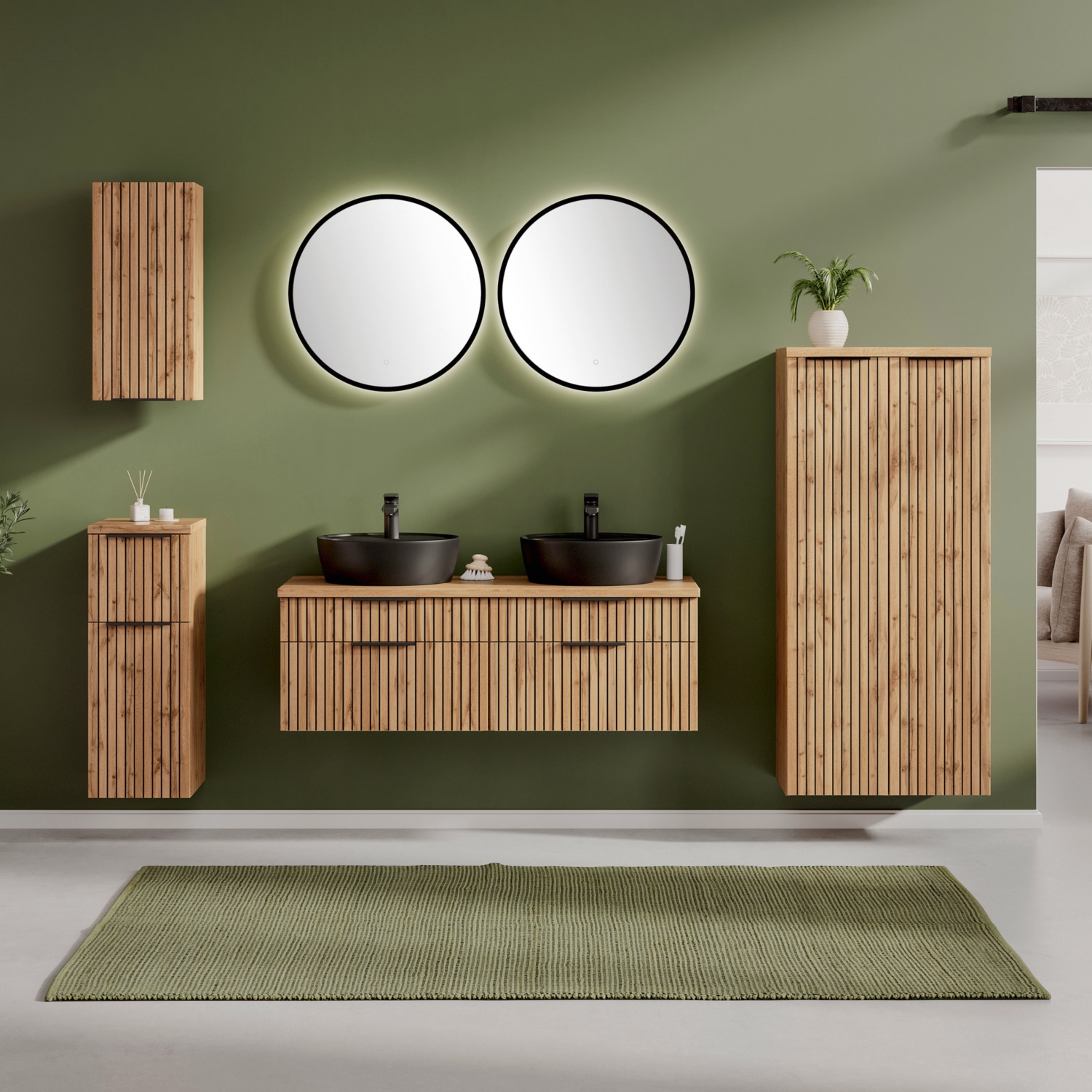 • in Wotaneiche-Dekor mit schwarzen Akzentstreifen