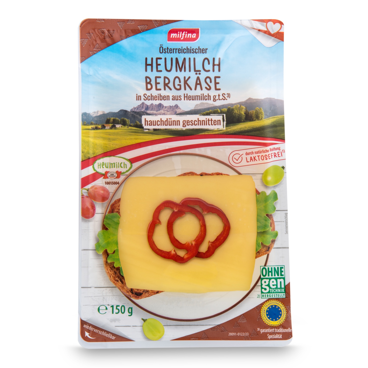 MILFINA Heumilch Bergkäse, hauchdünn in Scheiben