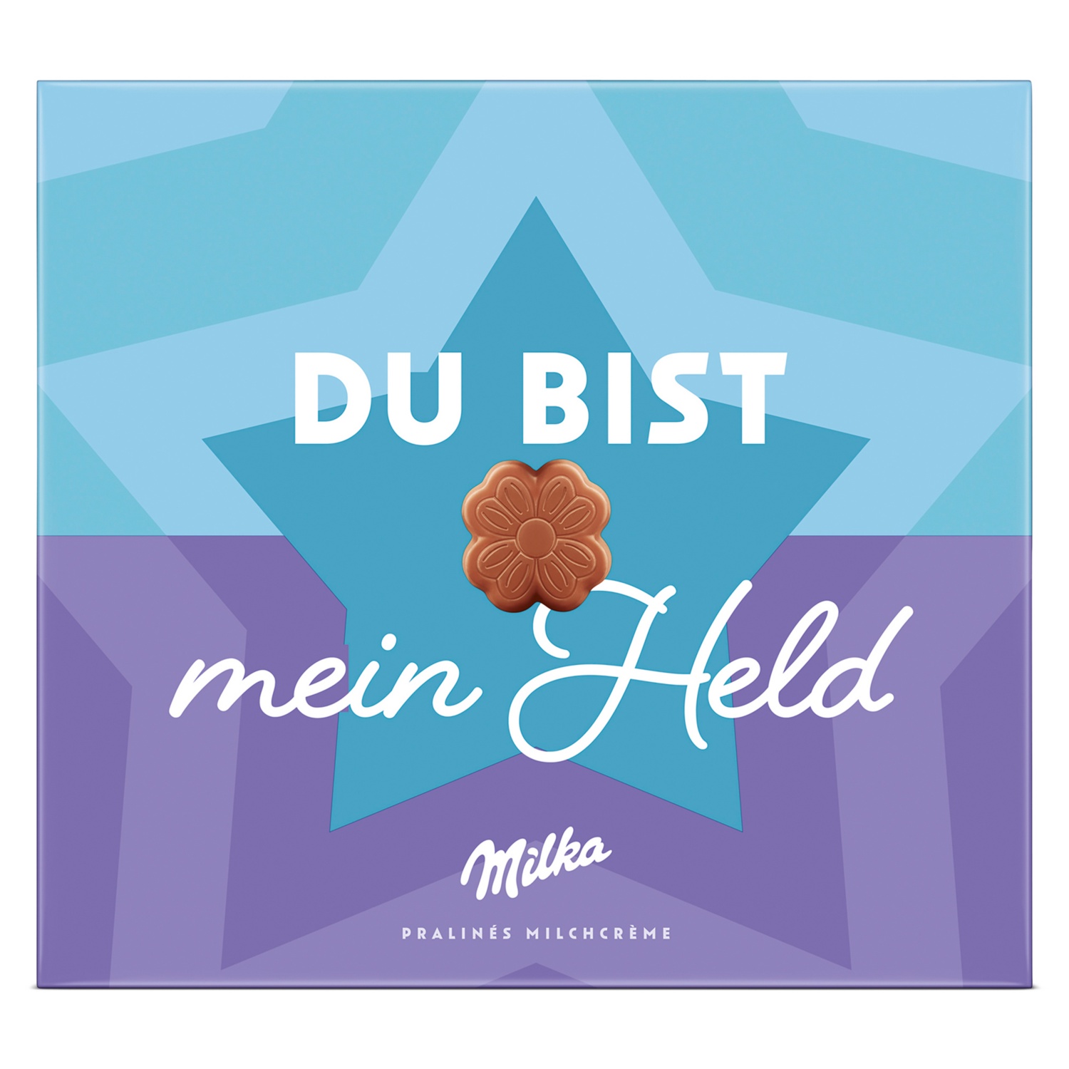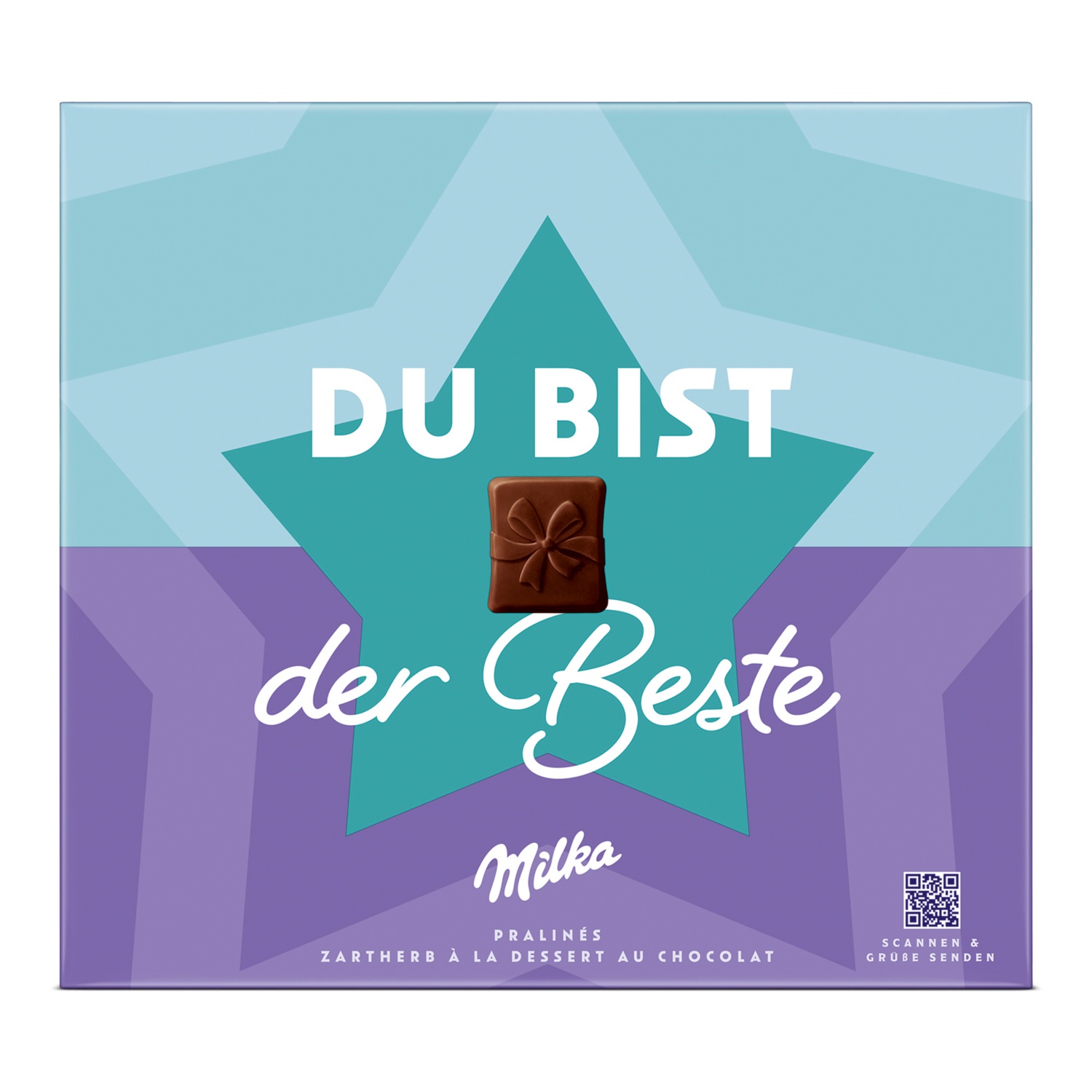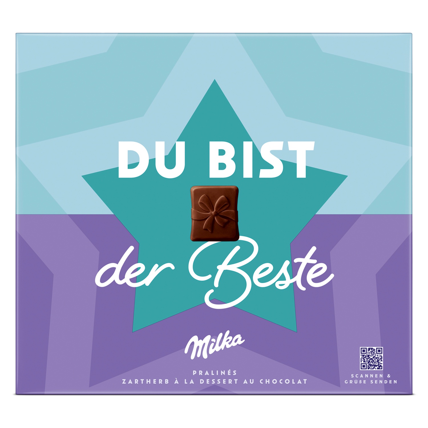 Zartherbe Alpenmilch Schokoladen-Pralinen gefüllt mit Kakaocrème (36%).