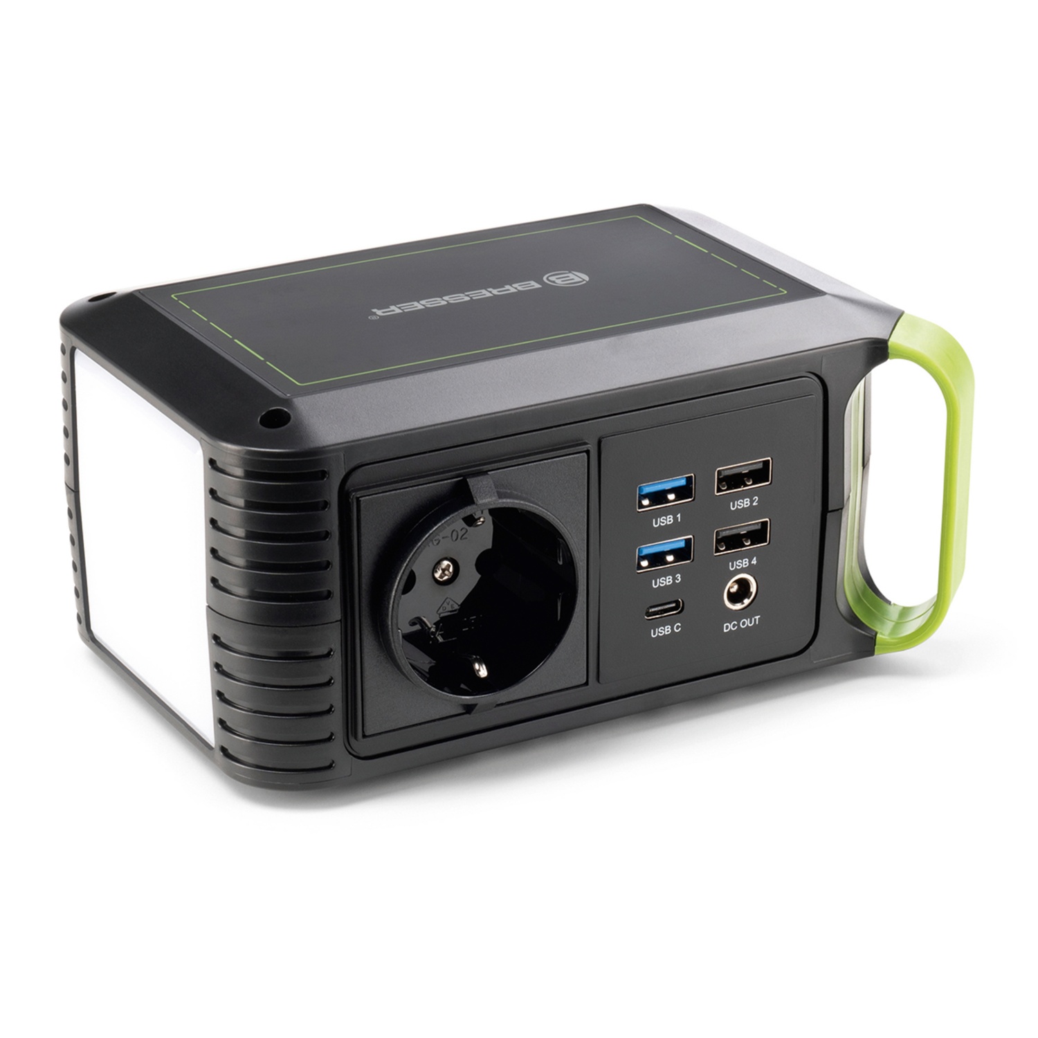 • Anschlüsse: 1x DC 12-16,8 V / 10 A, 2x USB 5 V / 2,4 A, 2x USB 5-12 V / 2 A, 1x USB-C 5 V / 3 A, 9 V / 2 A, 12 V / 1,5 A; AC-Ausgang