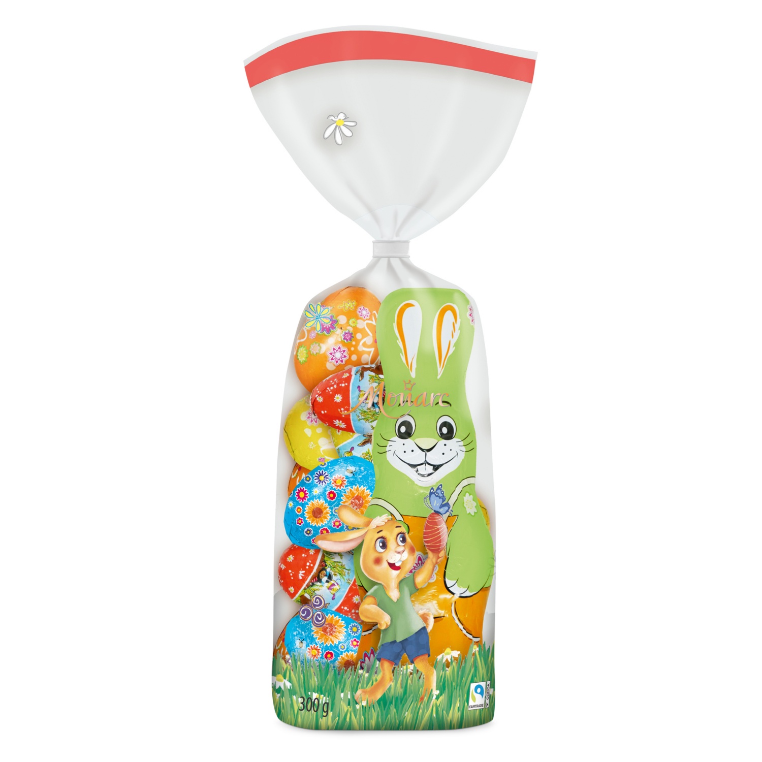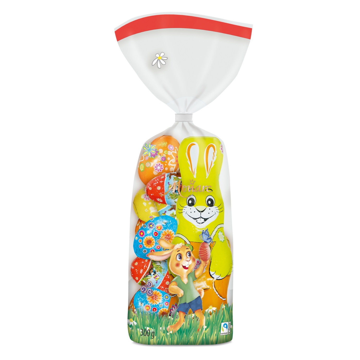 gefüllt mit verschiedenen gefüllten oder hohlen Osterfiguren aus Vollmilchschokolade