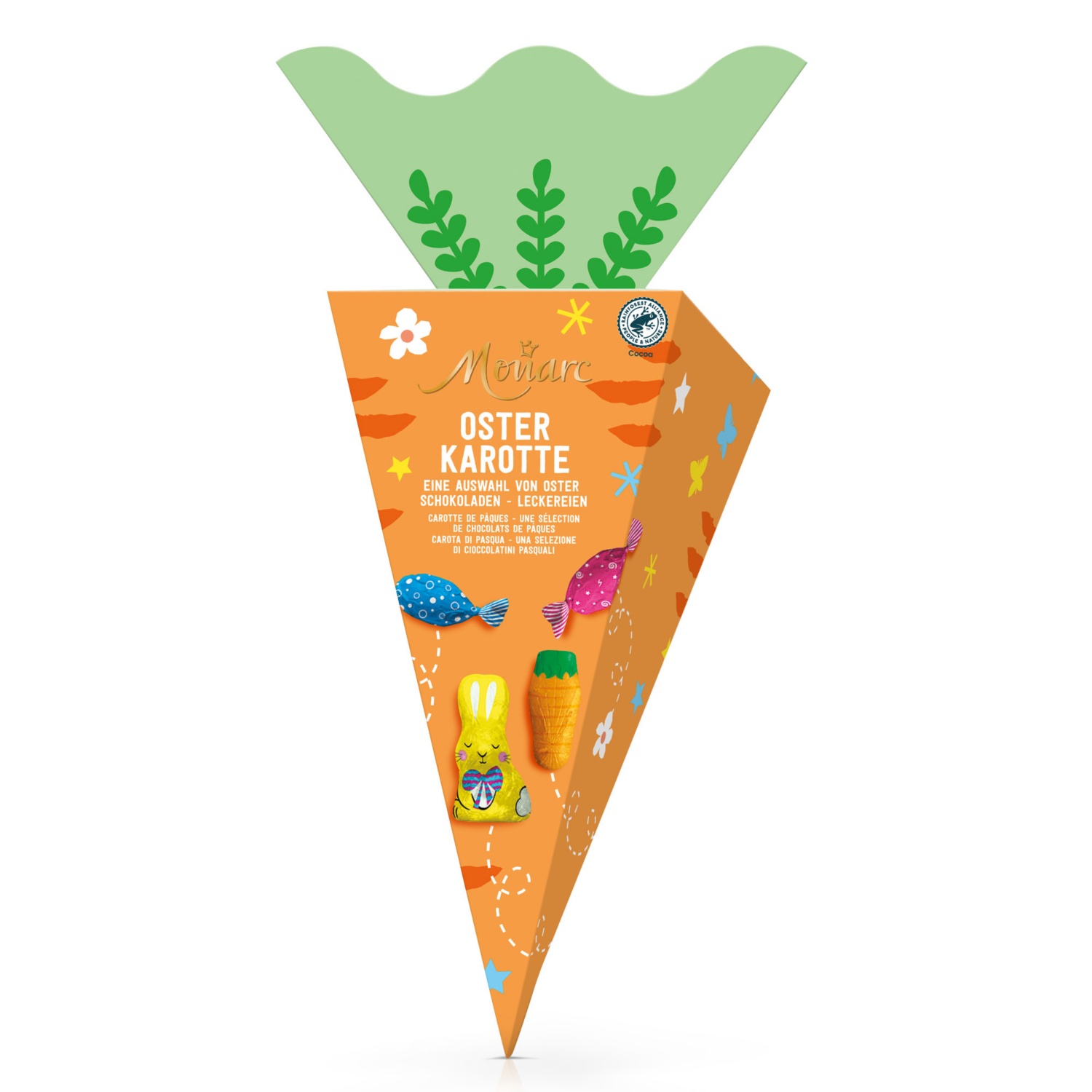 mit verschiedenen gefüllten, massiven oder hohlen Osterfiguren aus Vollmilchschokolade