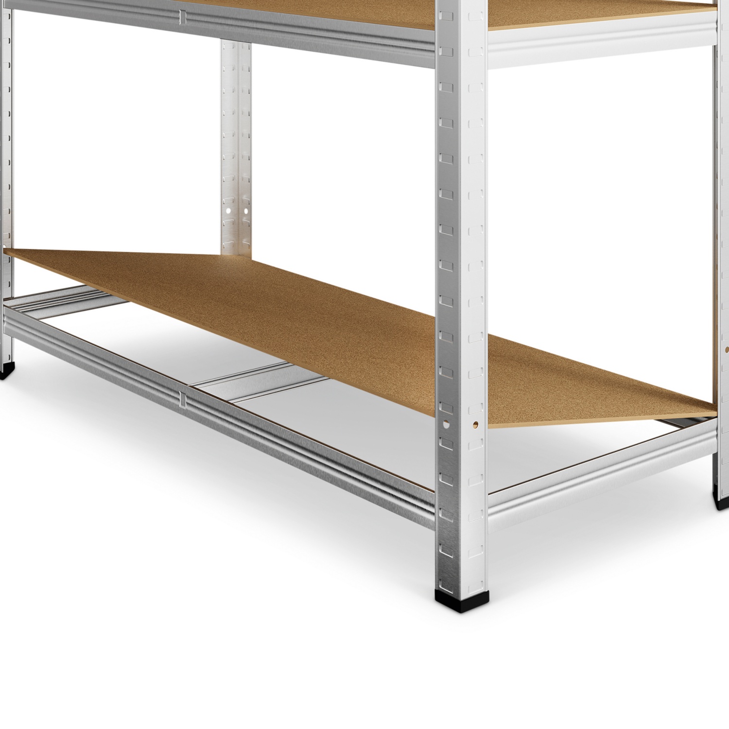 Dank der verzinkten Stahlkonstruktion und den 4 MDF-Böden besitzen die Lagerregale einen stabilen Halt und dadurch jede Menge Ablagefläche.