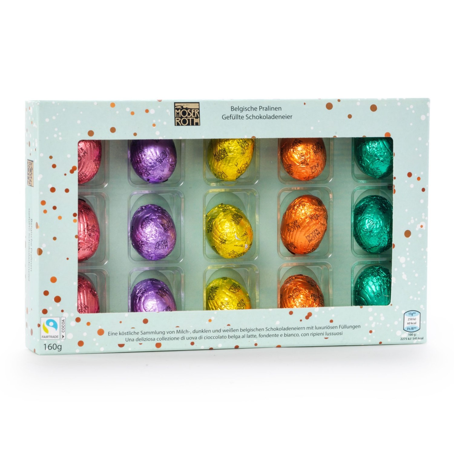 edle Mischung aus gefüllten belgischen Zartbitter-, Vollmilch- und Weiße-Schokoladen Eiern Bitte beachten Sie, dass diese Aktionsartikel, im Unterschied zu unserem dauerhaft erhältlichen Sortiment, nur in begrenzter Anzahl zur Verfügung stehen. Abgabe nur in Haushaltsmengen und solange der Vorrat reicht. Sollten bestimmte Produkte, trotz sorgfältiger Planung, aufgrund unerwartet hoher Nachfrage, am ersten Aktionstag ausverkauft sein, bitten wir um Verständnis. Bei Textilien und Schuhen sind teilweise Modelle nicht in allen Größen erhältlich. Beim Kauf eines Elektro-/Elektronikartikels können Sie Zug um Zug ein Gerät gleichwertiger Art unentgeltlich in unserer Filiale zurückgeben. Kein Flaschenpfand, inkl. sämtlicher Steuern. Alle Artikel ohne Dekoration. Die Abbildungen verstehen sich als Serviervorschläge bzw. Symbolfotos. Bei Preissenkungen ist die Angabe der %-Senkung kaufmännisch gerundet. Wir führen unterschiedliche Verpackungen. In unseren Filialen wird jeweils nur eine Verpackungsart angeboten. Bitte beachten Sie, dass vereinzelte Filialen ein abweichendes Sortiments- und Aktionsartikelangebot führen. Diese sind aufhofer.at/filialenzu finden sowie vor Ort entsprechend gekennzeichnet. Technische und optische Änderungen sowie Satz- und Druckfehler vorbehalten.