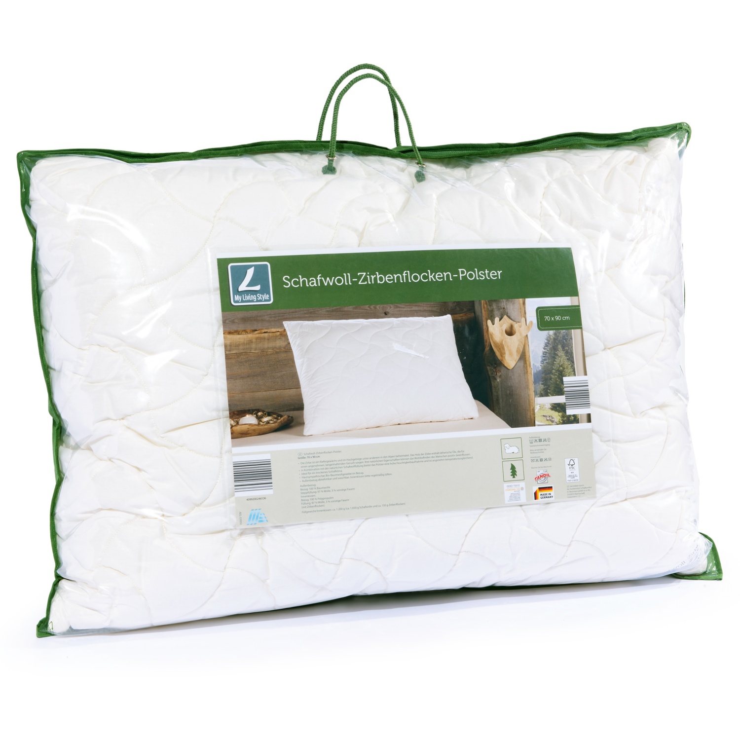 Füllung: ca. 1.050 g Schafwolle und ca. 150 g Zirbenflocken