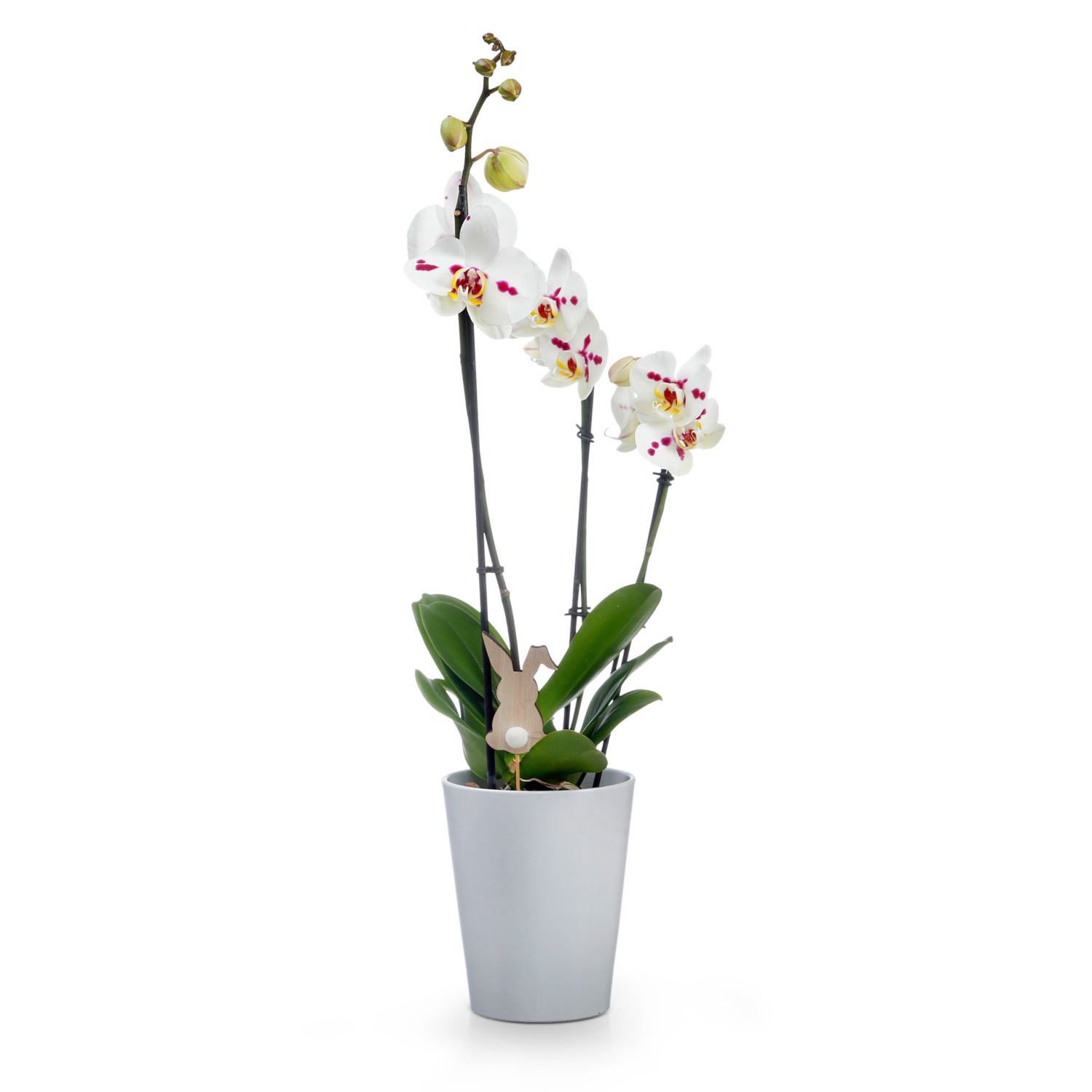 im 14-cm-Keramikübertopf, Höhe inkl. Topf: mind. 60 - 70 cm, 2 Triebe, verschiedene Blüten- und Topffarben, inkl. Oster-Dekostecker