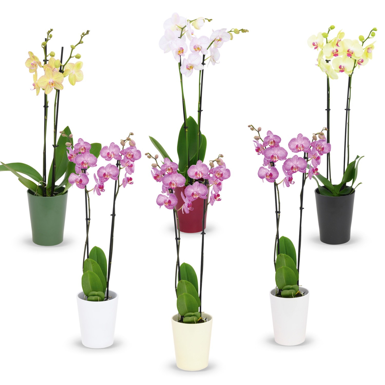 im modernen ca. 13-cm-Keramikübertopf, Höhe inkl. Topf: mind. 60 - 70 cm, mit zwei Trieben, in verschiedenen Farben erhältlich