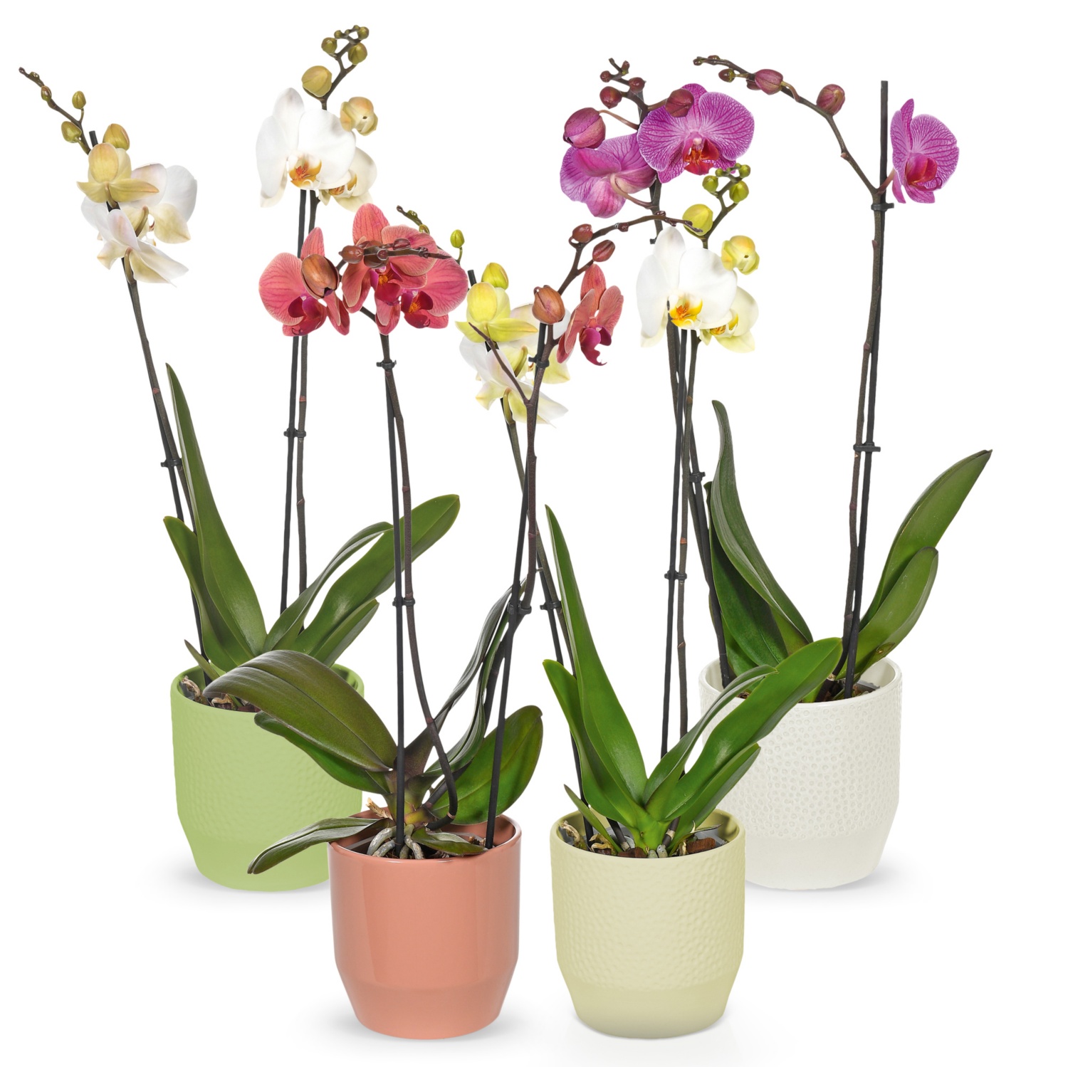 im 14-cm-Keramiktopf, Höhe inkl. Topf: mind. 60 - 70 cm, mit zwei Trieben, verschiedene Blüten- und Topffarben