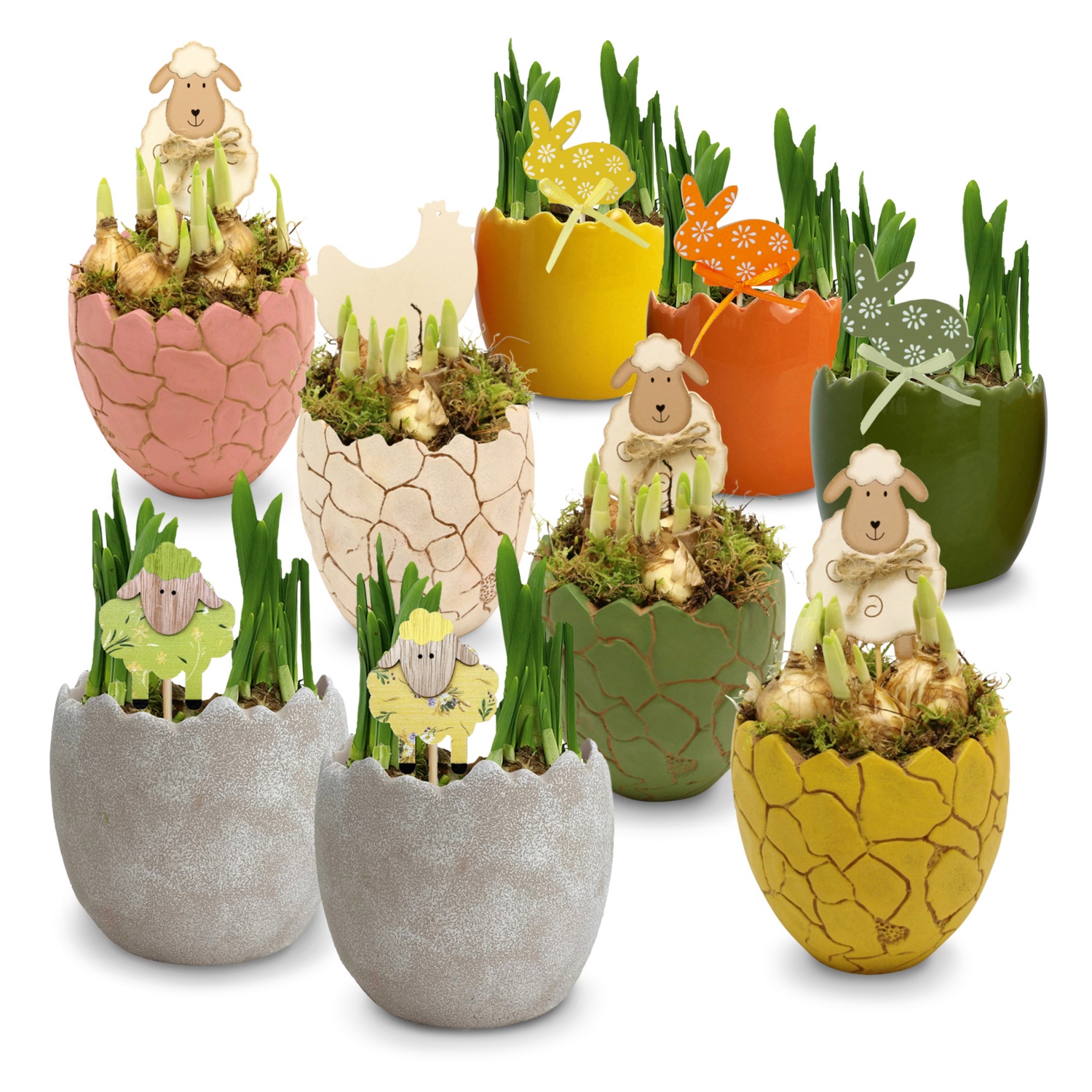 im 10-/10,5-cm-Topf, dekorative Gefäße in Eierschalenform, Höhe inkl. Topf: ca. 17 - 22 cm, mit Narzissen bepflanzt