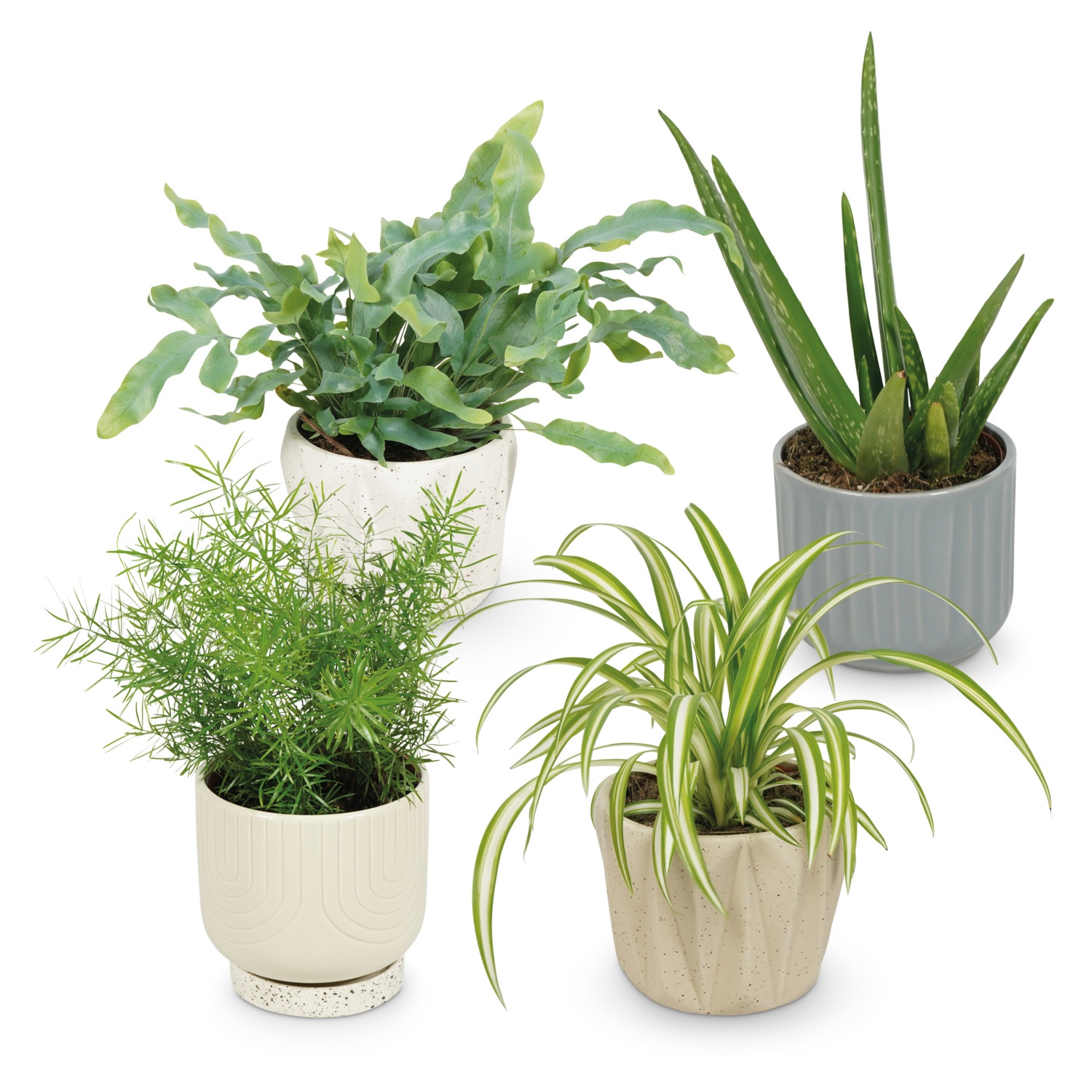 • verschiedene Grünpflanzen wie Aloe vera, Farn, Zimmeresche etc.