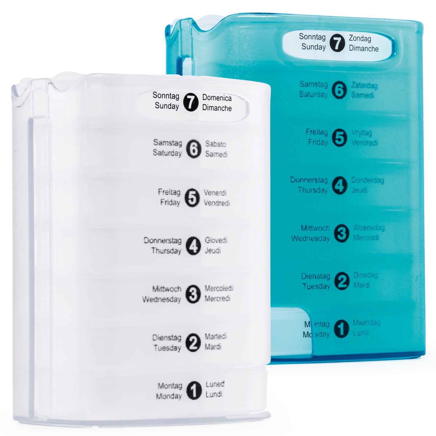 • platzsparende Medikamenten-Aufbewahrung für die gesamte Woche