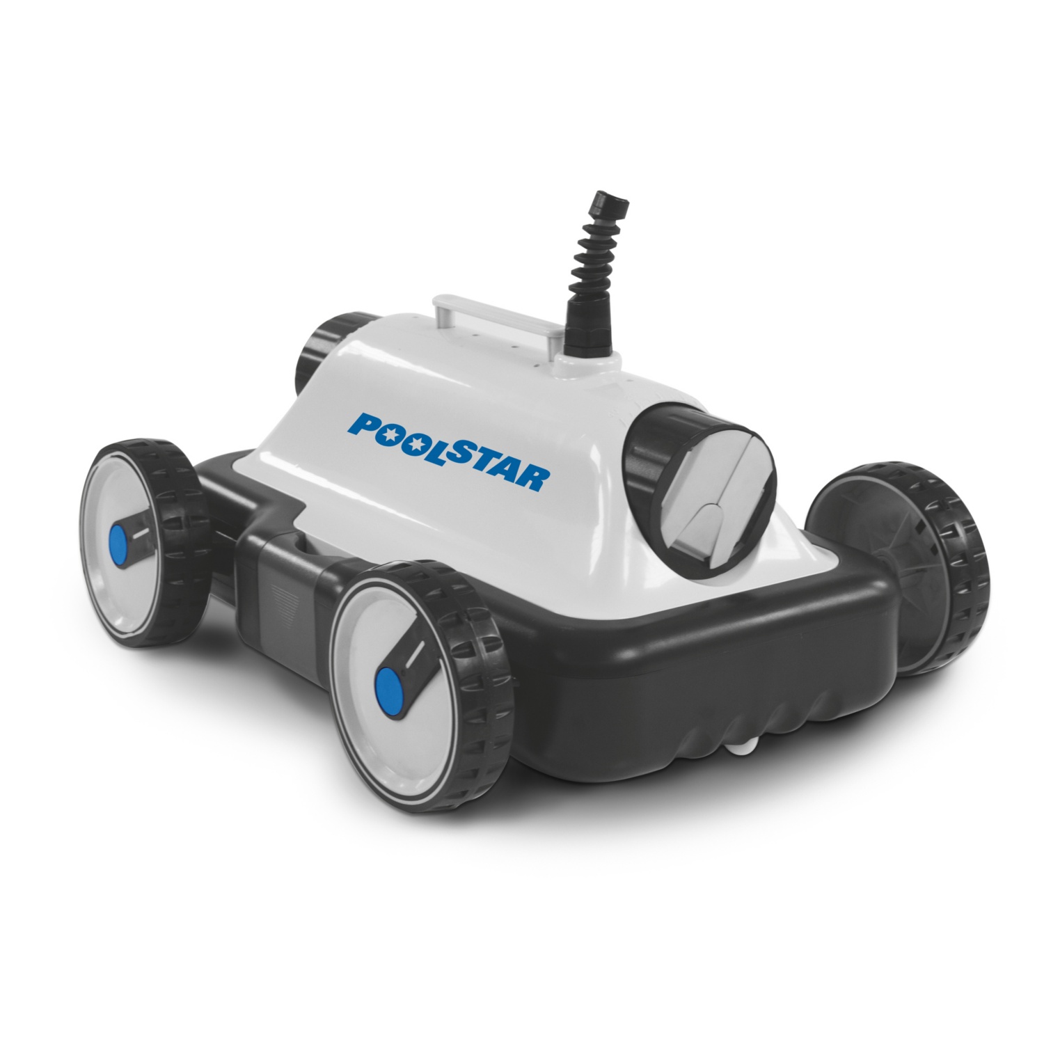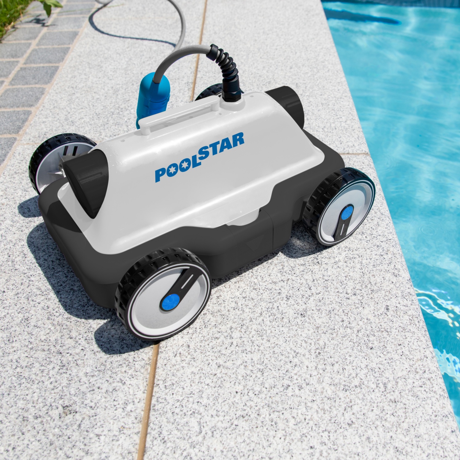 Poolstar Poolrunner S63 Vollautomatischer, elektrischer Bodensauger zur Reinigung von allen Pools mit flachem Boden. Ein Anschluss an den Skimmer bzw. an ein externes Filtersystem ist nicht notwendig. Der Poolstar Poolrunner S63 verfügt über einen 24 V Gleichspannungsmotor mit Jetantrieb zur alleinigen Reinigung von Bodenflächen. Die Steuerung erfolgt über jeweils eine Düse auf der Vorder- bzw. Rückseite. Das eingebaute Filtersystem verfügt über eine Hochleistungspumpe von 16.000 l/Std. Das Verbindungskabel zwischen Steuergerät und Bodensauger hat eine Länge von 8,80 m. Der Poolstar Poolrunner S63 kann für Pools bis zu einer Größe von 18 m² eingesetzt werden. Vorteile: