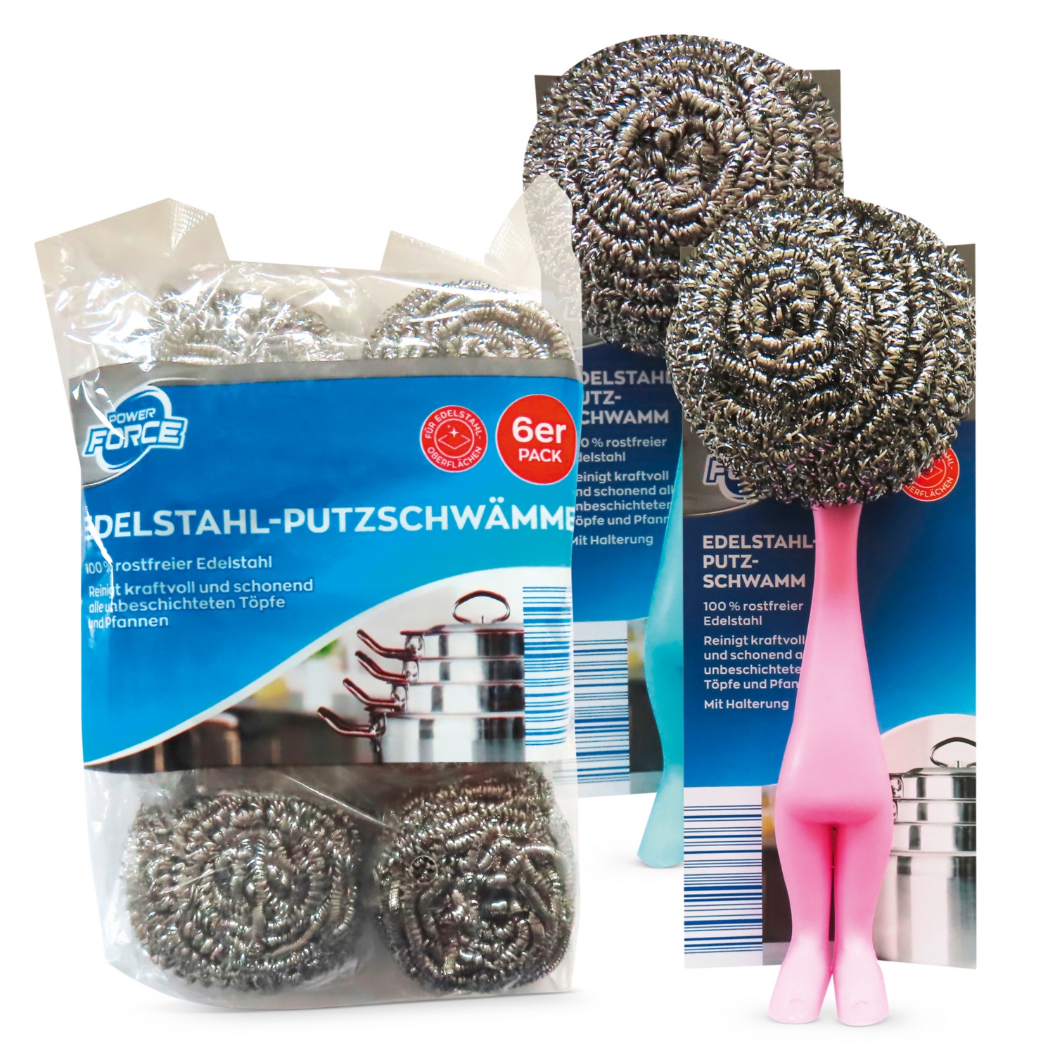 reinigt kraftvoll und schonend unbeschichtete Töpfe und Pfannen