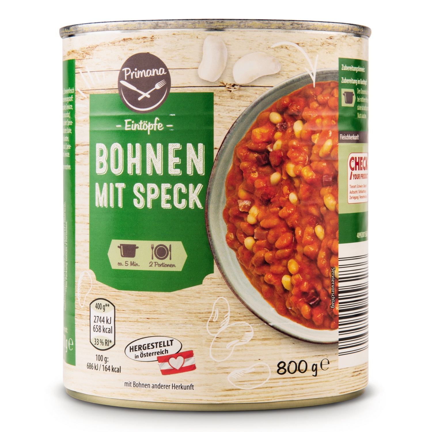 PRIMANA Fertiggericht, Bohne mit Speck