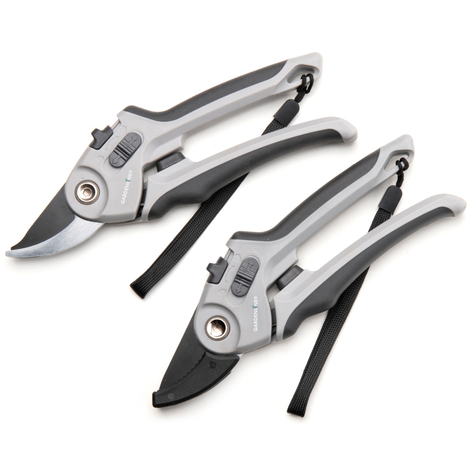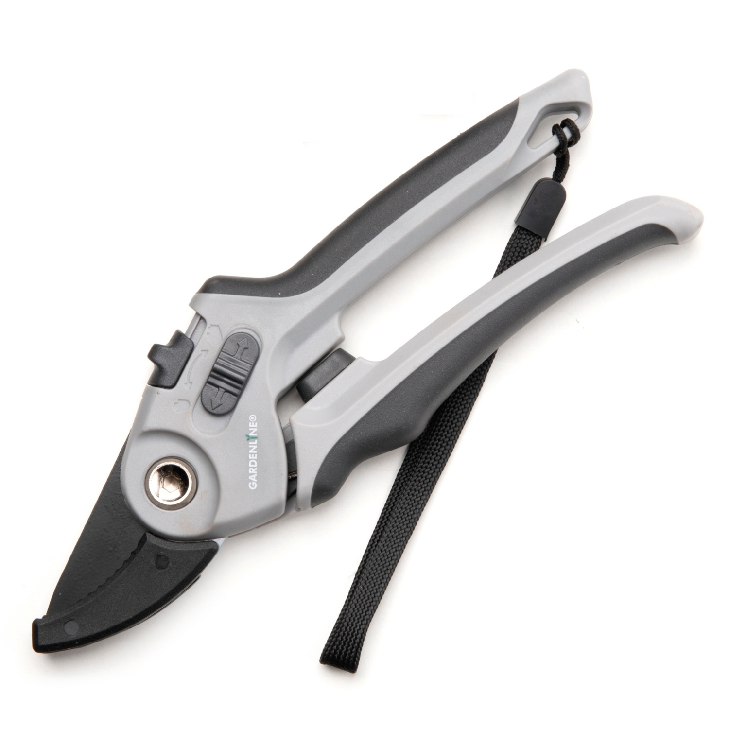 gehärteter Stahl mit Antihaftbeschichtung, ergonomischer Griff mit Verstellmöglichkeit für kleine und große Hände, für Äste bis Ø 15 mm, bestehend aus