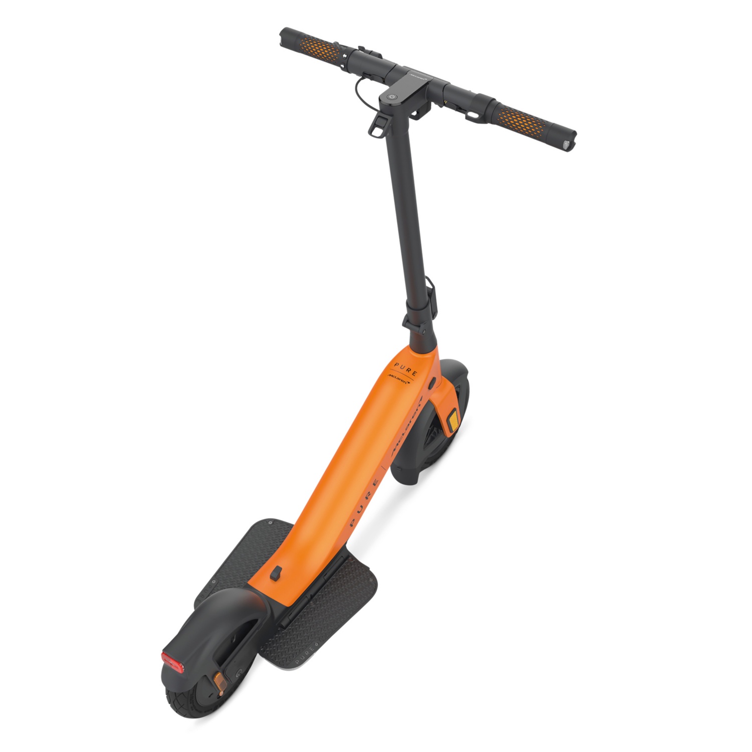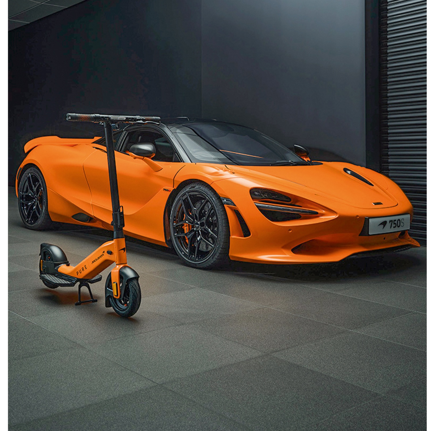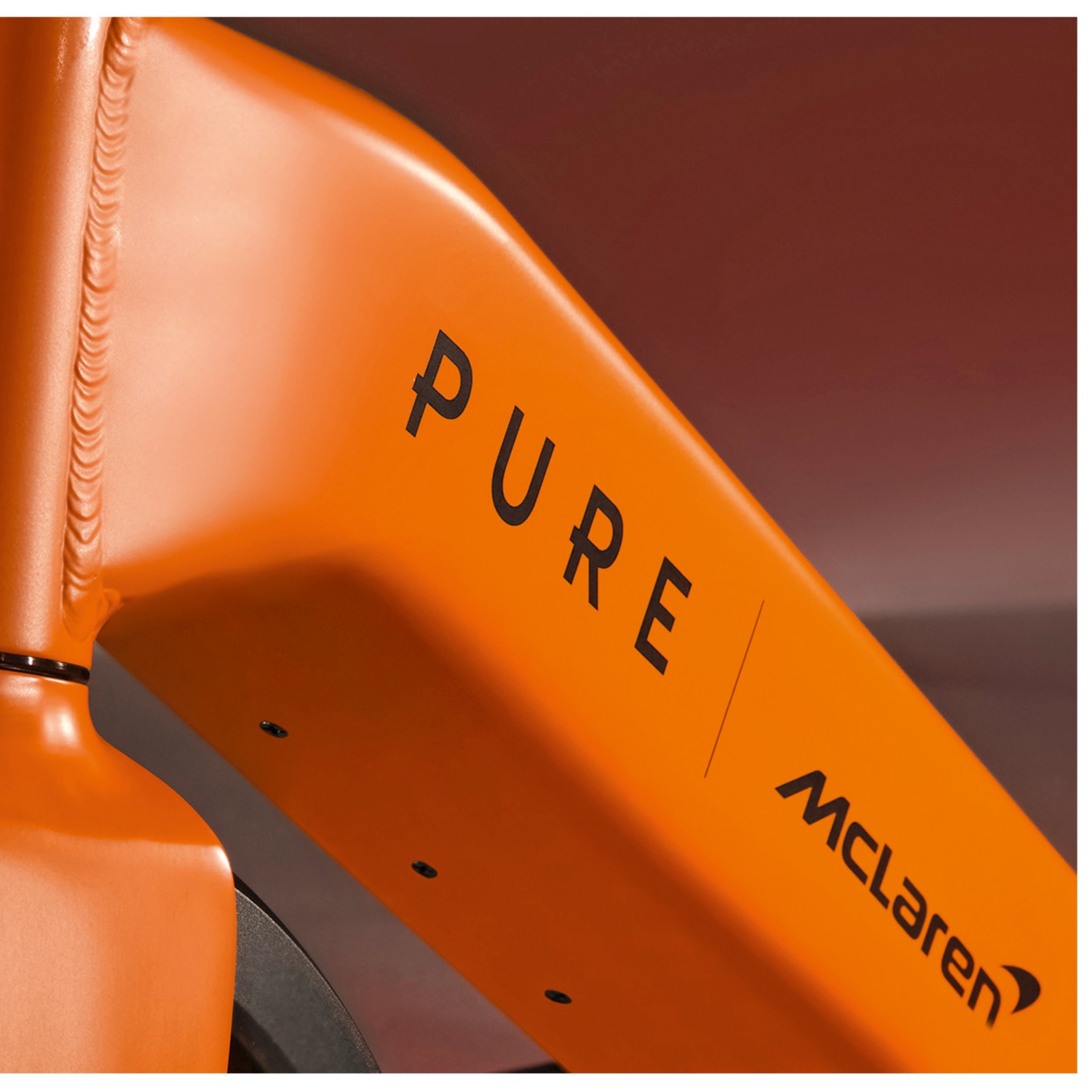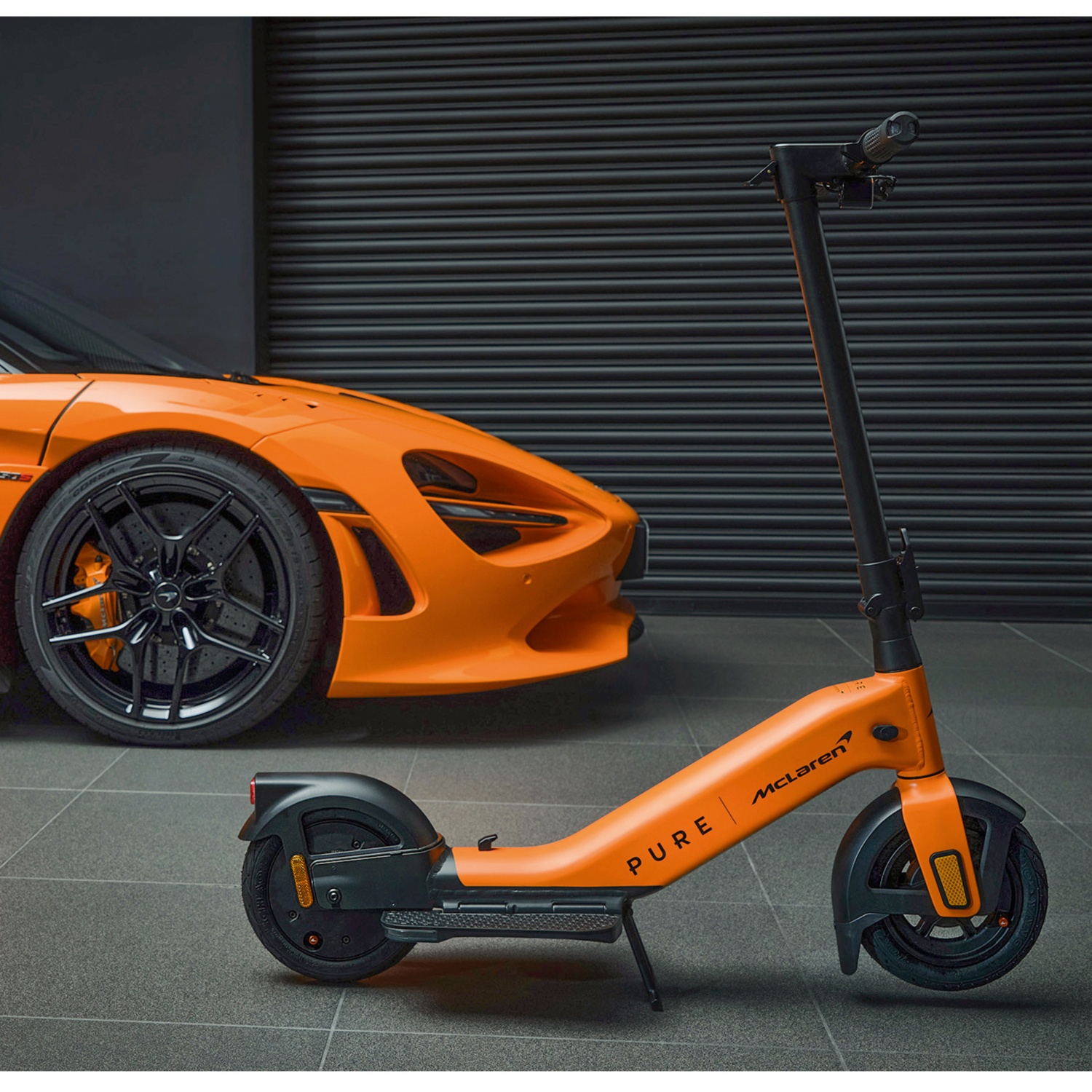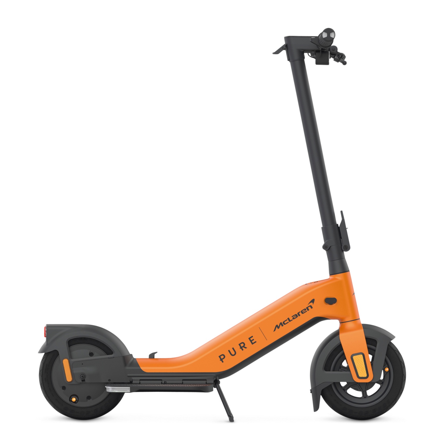 Weltklasse-Rennen trifft auf Weltklasse-Fahrgefühl. Sie wollten immer schon einen McLaren fahren? Die offizielle Zusammenarbeit von PURE mit McLaren vereint Design mit Technik und machts möglich. Schlankes Design für einfache Aufbewahrung.Die klappbaren Lenker, Fußstützen und Lenksäule machen den McLaren zu 70% schlanker als herkömmliche E-Scooter. Ohne Abstriche bei der Leistung integriert er sich platzsparend und nahtlos in Ihren Alltag.Innerhalb von wenigen Sekunden kann der PURE McLaren zusammengeklappt werden und ist mit nur 15 cm Breiteder schmalste E-Scooter der Weltin seiner Leistungsklasse.Länger fahren mit einer verbesserten Batterie, die Sie bis zu 60 Kilometer mit nur einer Ladung bringt.Verbesserte Steigungsfähigkeit und kraftvolle, schnelle Beschleunigung mit dem starken Motor.Dynamische Lenker- und Fußrastenblinker sorgen für eine klare und sichtbare Signalisierung.Ein helles Frontlicht mit 150 Lumen und ein Bremsrücklicht helfen Ihnen, unter allen Bedingungen immer gesehen zu werden.