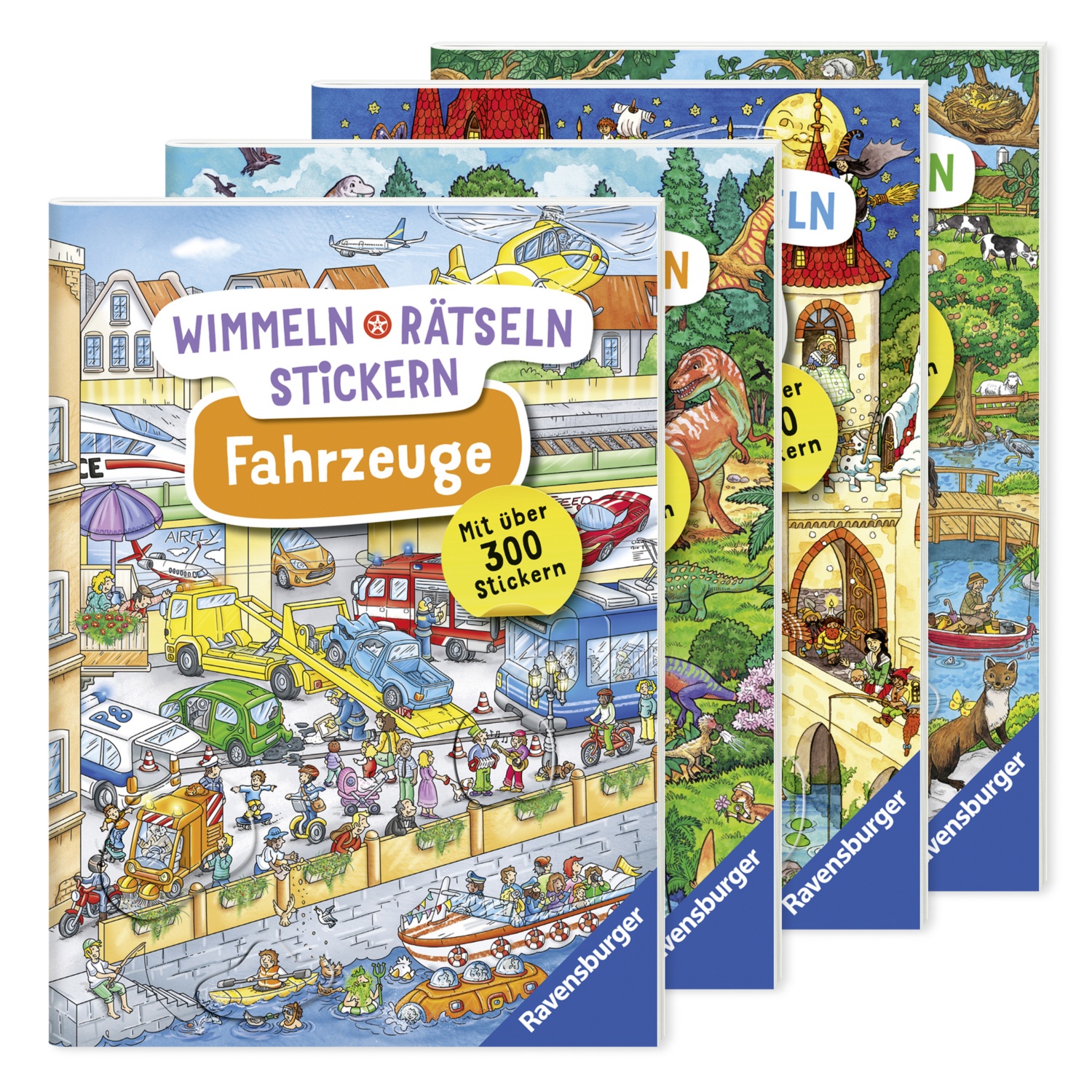 Stickerheft mit einzigartiger Kombination aus Wimmelbuch, Sticker und Rätsel.