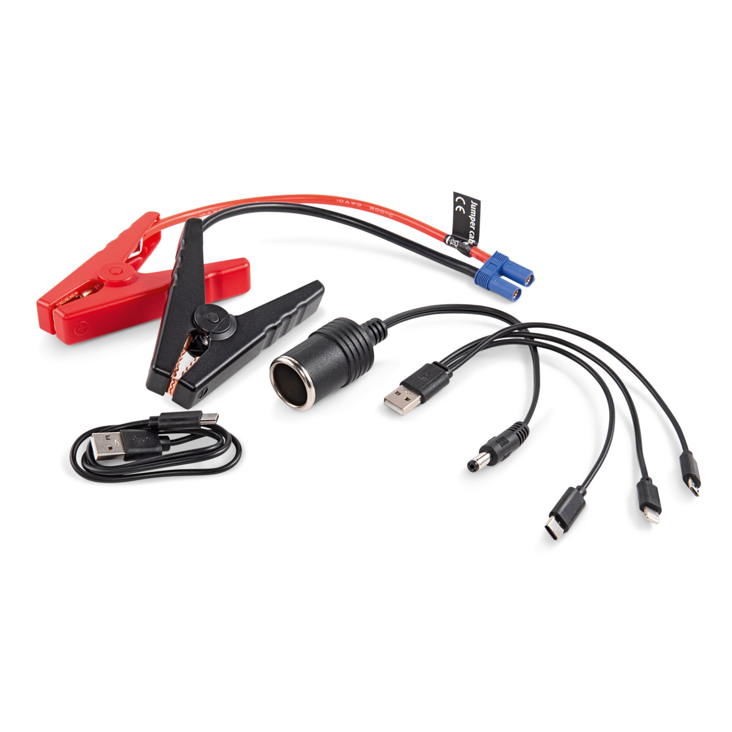 Mit unserem leistungsstarken 15.000 mAh Starthilfegerät haben Sie überall Strom und können Ihr Auto und Ihre Geräte jederzeit aufladen. Ausgestattet mit einem leistungsstarken 15.000 mAh Akku (3 x 3,7 V 5000 mAh) bietet es eine vielseitige Stromabgabe über USB-Anschlüsse (5 V/1 A, 5 V/2 A) und einen DC-Ausgang von 12 V/6 A. Das Gerät verfügt über mehrere Ladeoptionen, darunter einen DC5.5-Eingang mit max. 15 V 1 A. Eine eingebaute Notleuchte mit drei Leuchtmodi – SOS-Licht, Taschenlampe und Dauerlicht – sorgt in jeder Situation für zusätzliche Sicherheit. Das auf Langlebigkeit ausgelegte Gerät ist gemäß IP54-Standard gegen Spritzwasser und Staub geschützt. Im Lieferumfang enthalten sind wichtige Zubehörteile wie ein Batteriekabel mit Klemmen, ein Netzteil, ein mit allen 12-V-Fahrzeugen kompatibles 12-V-Autoladegerät, ein 3-in-1-Ladekabel mit Mini-USB-, Micro-USB- und Typ-C-Anschlüssen sowie eine praktische Aufbewahrungstasche. Bleiben Sie vorbereitet und Ihnen geht nie der Strom aus, wenn Sie ihn brauchen