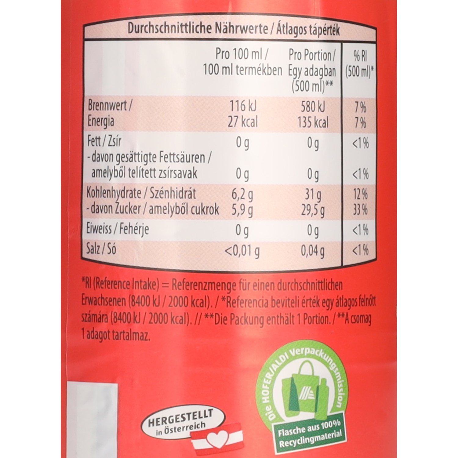 Abgabe nur in Haushaltsmengen und solange der Vorrat reicht. Preise inkl. Steuern und exkl. Flascheneinsatz (Pfand). Alle Artikel ohne Dekoration. Die Abbildungen verstehen sich als Serviervorschläge bzw. Symbolfotos. Die „statt“-Preise waren unsere bisher gültigen Verkaufspreise. Bei Preissenkungen ist die Angabe der %-Senkung kaufmännisch gerundet. Wir führen unterschiedliche Verpackungen. In unseren Filialen wird jeweils nur eine Verpackungsart angeboten. Bitte beachten Sie, dass vereinzelte Filialen ein abweichendes Sortiments- und Aktionsartikelangebot führen. Diese sind auf hofer.at/filialen zu finden sowie vor Ort entsprechend gekennzeichnet. Technische und optische Änderungen sowie Satz- und Druckfehler vorbehalten.