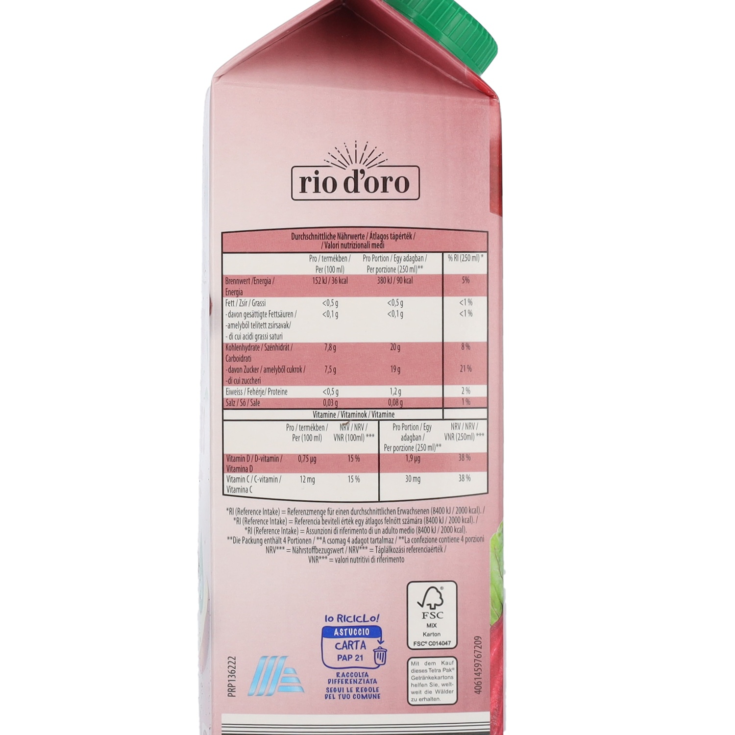 RIO D'ORO Fruit & Veggie Getränk, Rote Früchte