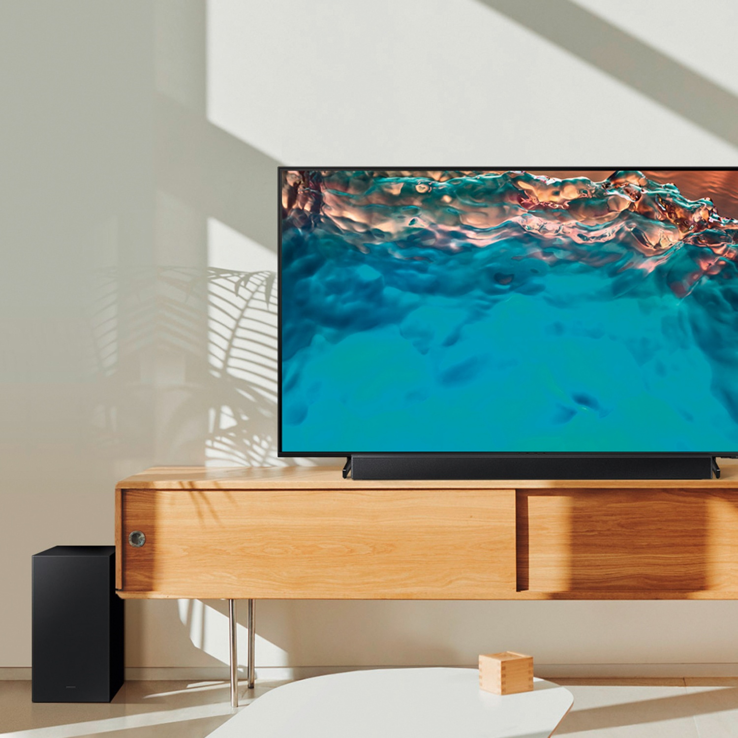 • Soundbar: 85,9 x 5,9 x 7,5 cm (B x H x T) / 1,4 kg