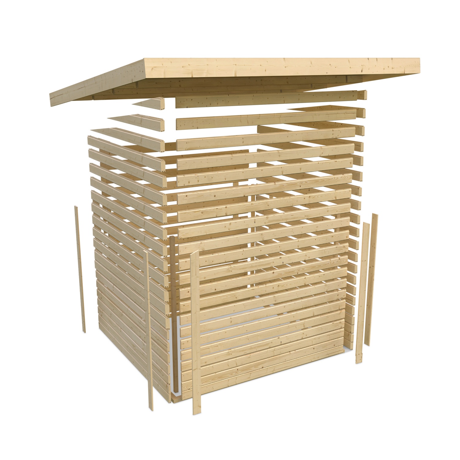 • 38 mm starken Bohlen aus nordischem Fichtenholz mit seinen hervorragenden Eigenschaften für den Saunabau