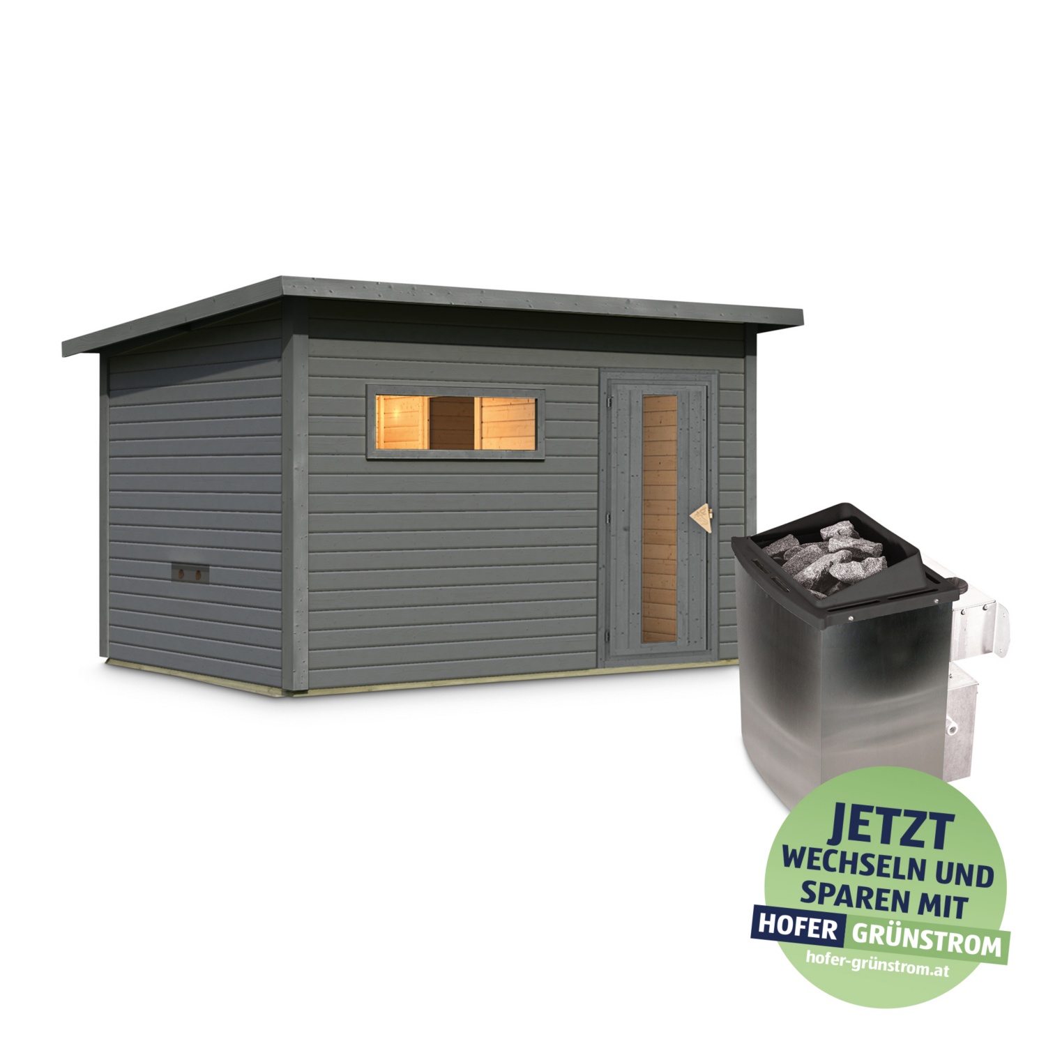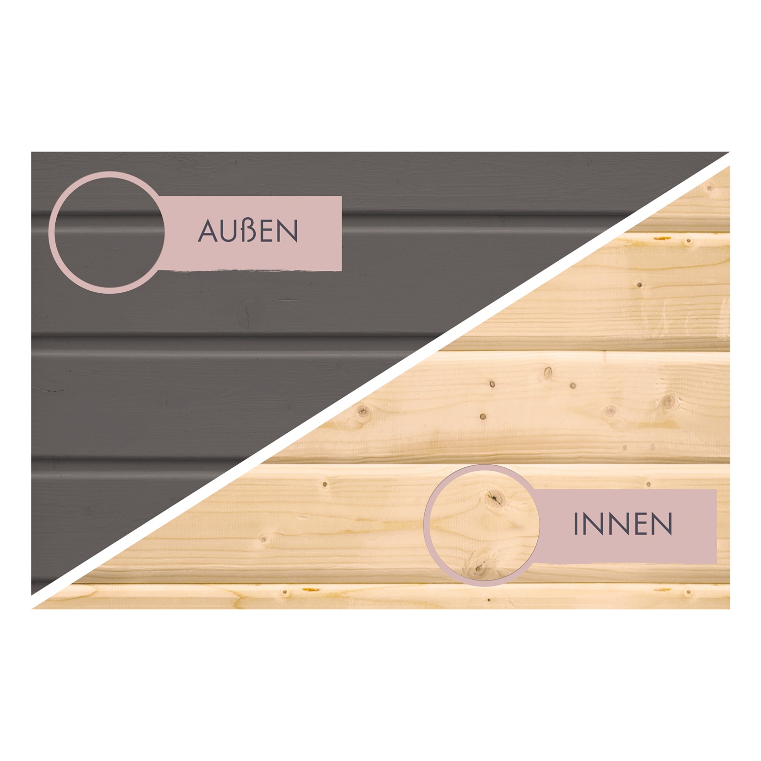 • bestes Saunaklima durch traditionelle Bauweise und naturbelassenem Holz in der Farbe terragrau