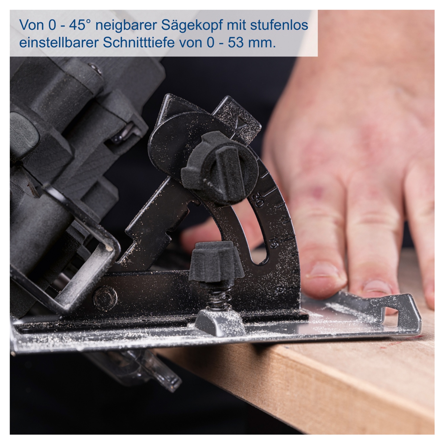 Schnitttiefe und Schnittwinkel stufenlos einstellbar