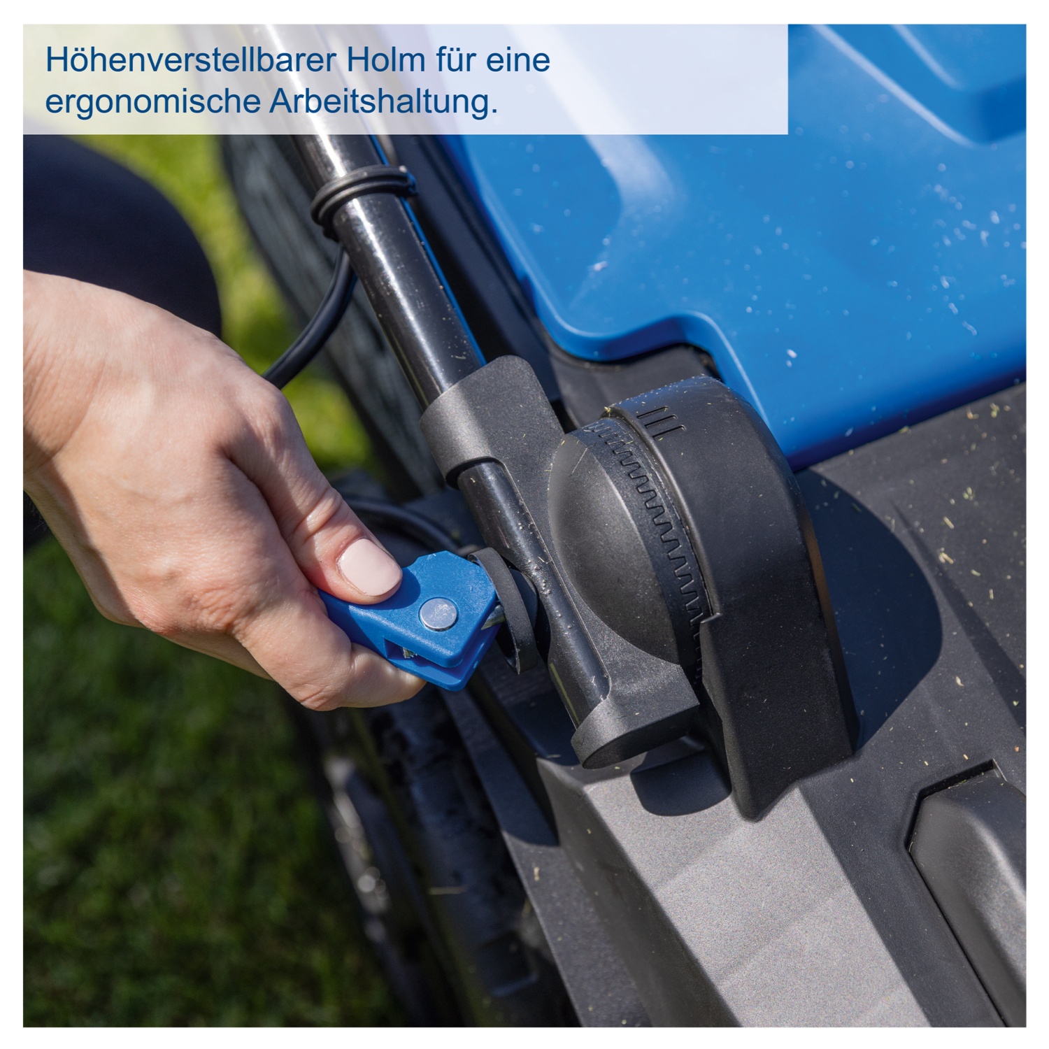 • klappbarer und höhenverstellbarer Holm – für eine platzsparende Lagerung und eine ergonomische Arbeitshaltung