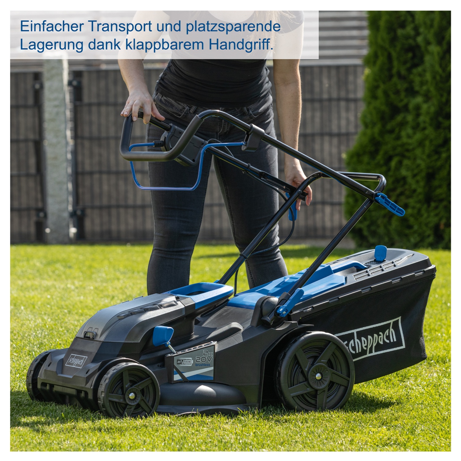 • Highwheeler – große, rasenschonende Laufräder sorgen für sicheren Halt auch in abschüssigem Gelände
