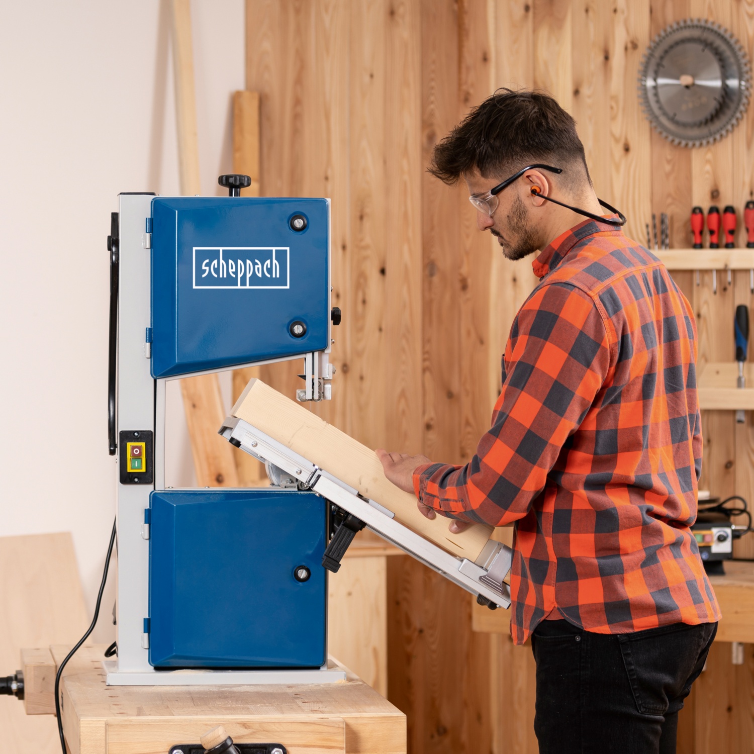 • inklusive Sägeband, Parallelanschlag, Querschneidlehre undSchiebestock