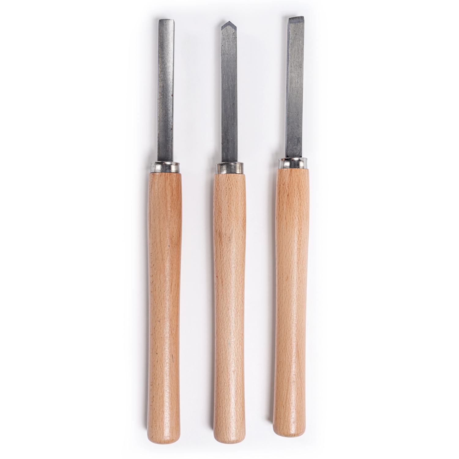 • komplett mit Körnerspitze, Stirnmitnehmer, Planscheibe, Reitstock, Werkzeugauflage und 3 Drechselbeitel