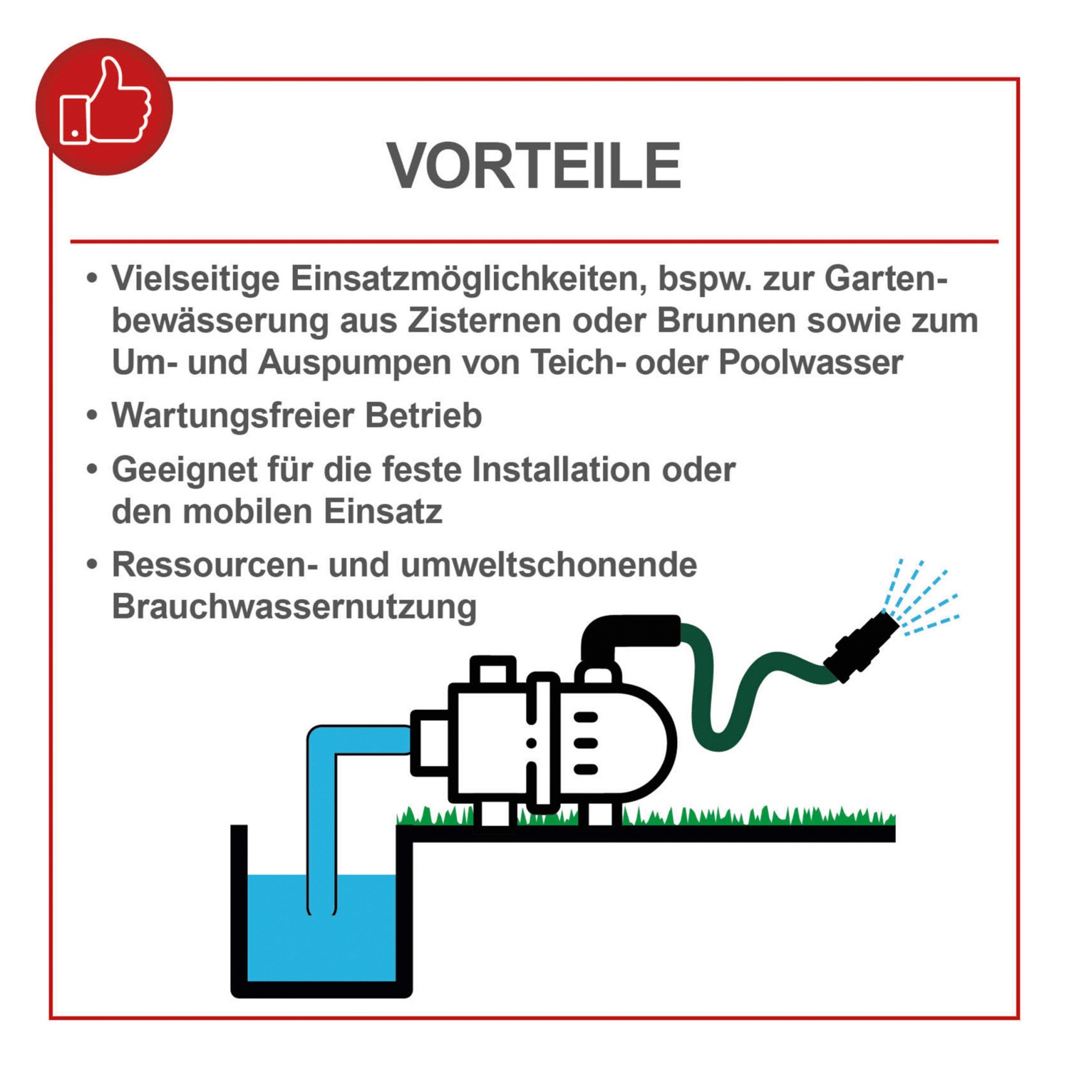 • Kraftvolle Gartenpumpe für vielseitige Einsatzmöglichkeiten: Gartenbewässerung, Um- und Auspumpen bspw. für Teich oder Pool