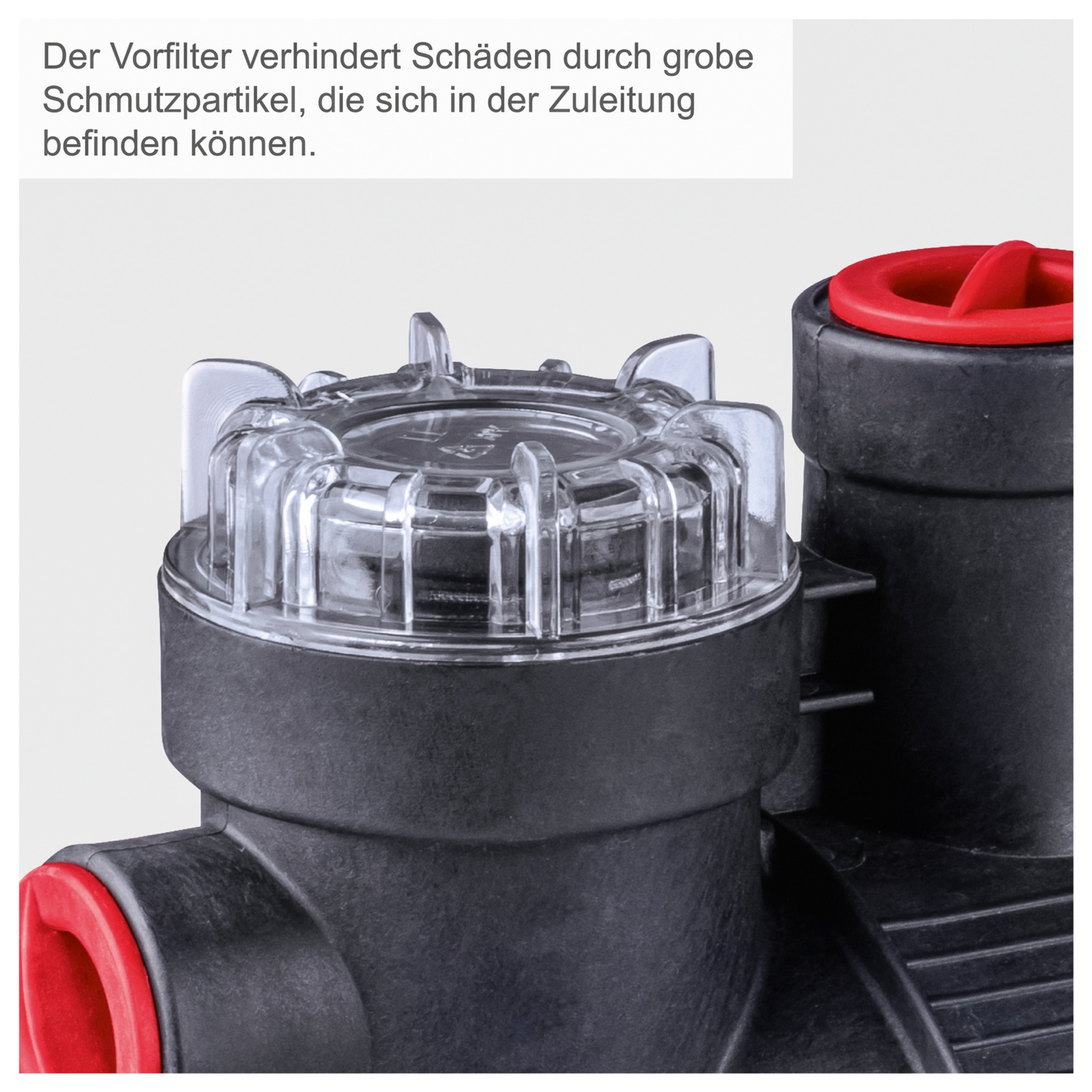 • der Vorfilter verhindert Schäden durch grobe Schmutzpartikel, die sich in der Zuleitung befinden können