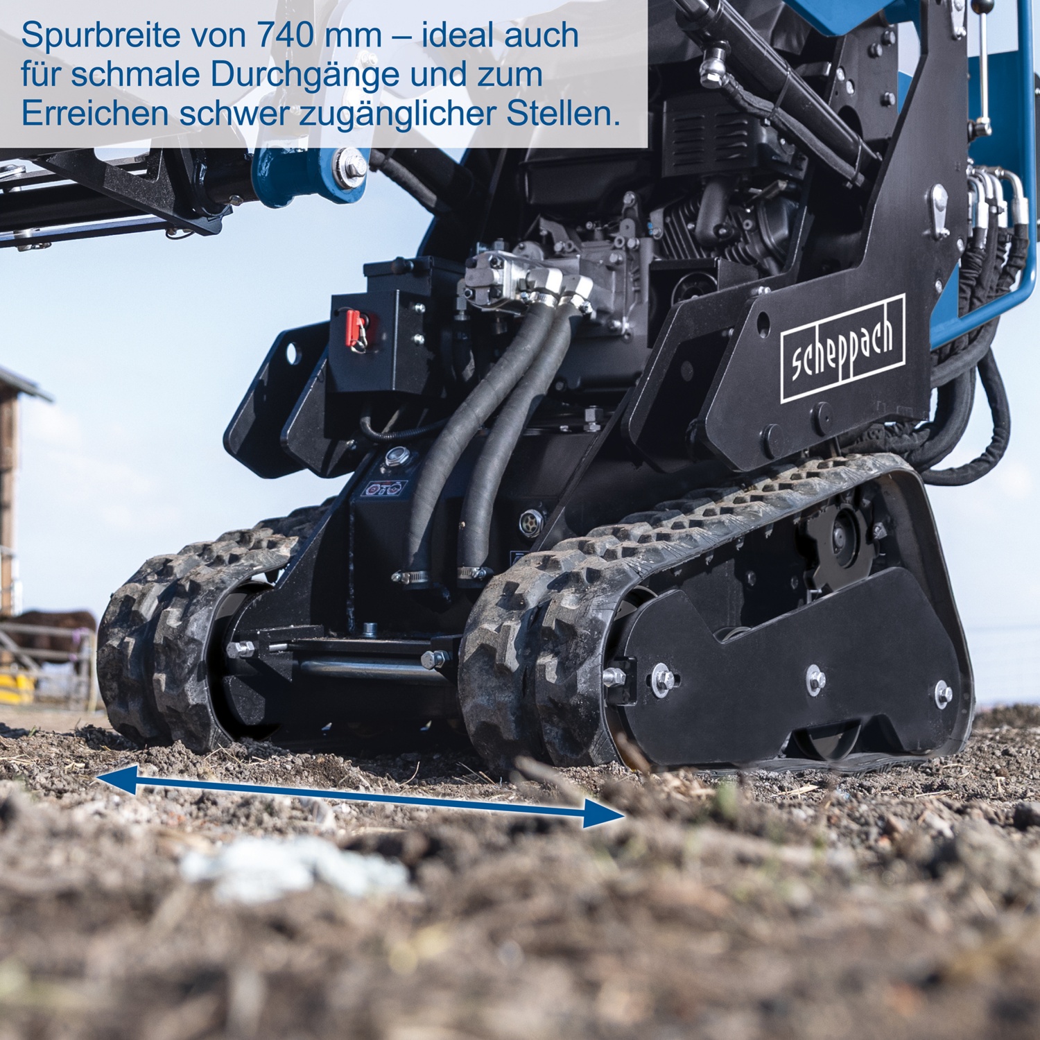 • Spurbreite von 740 mm – ideal auch für schmale Durchgänge und zum Erreichen schwer zugänglicher Stellen