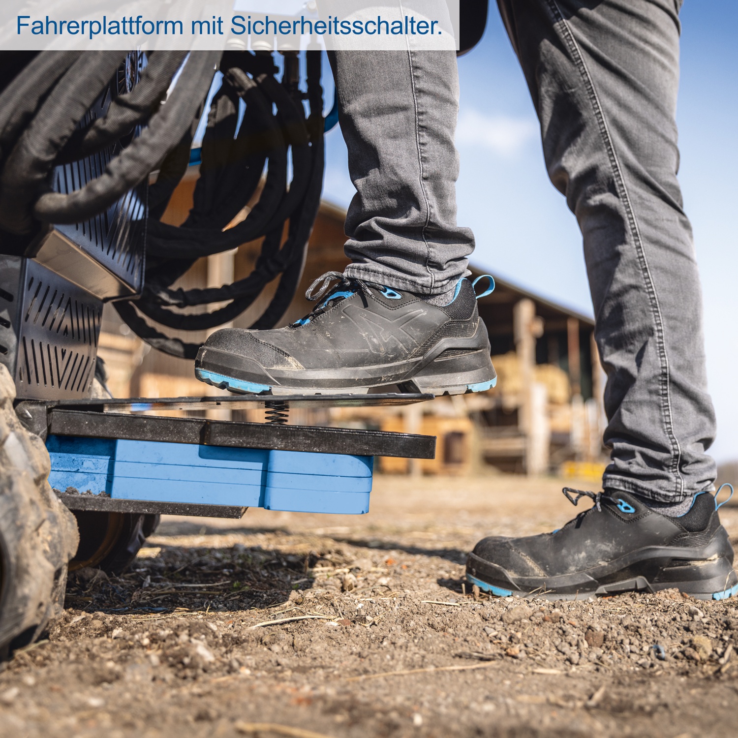 • Fahrerplattform mit Sicherheitsschalter und seitlichen Polsterauflagen für eine sichere Bedienung