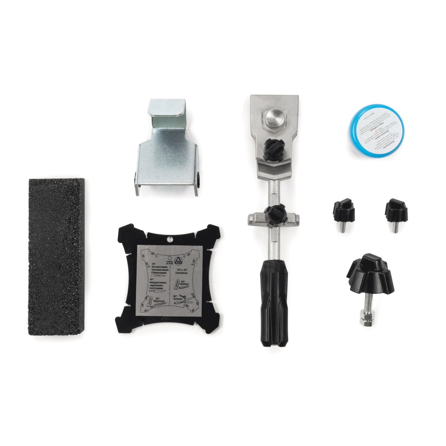 • inklusive Homekit: Abziehpaste, Winkellehre, Steinpräparierer und den Schleifvorrichtungen zum Schleifen von Messern, Scheren und vielen geraden Standardwerkzeugen