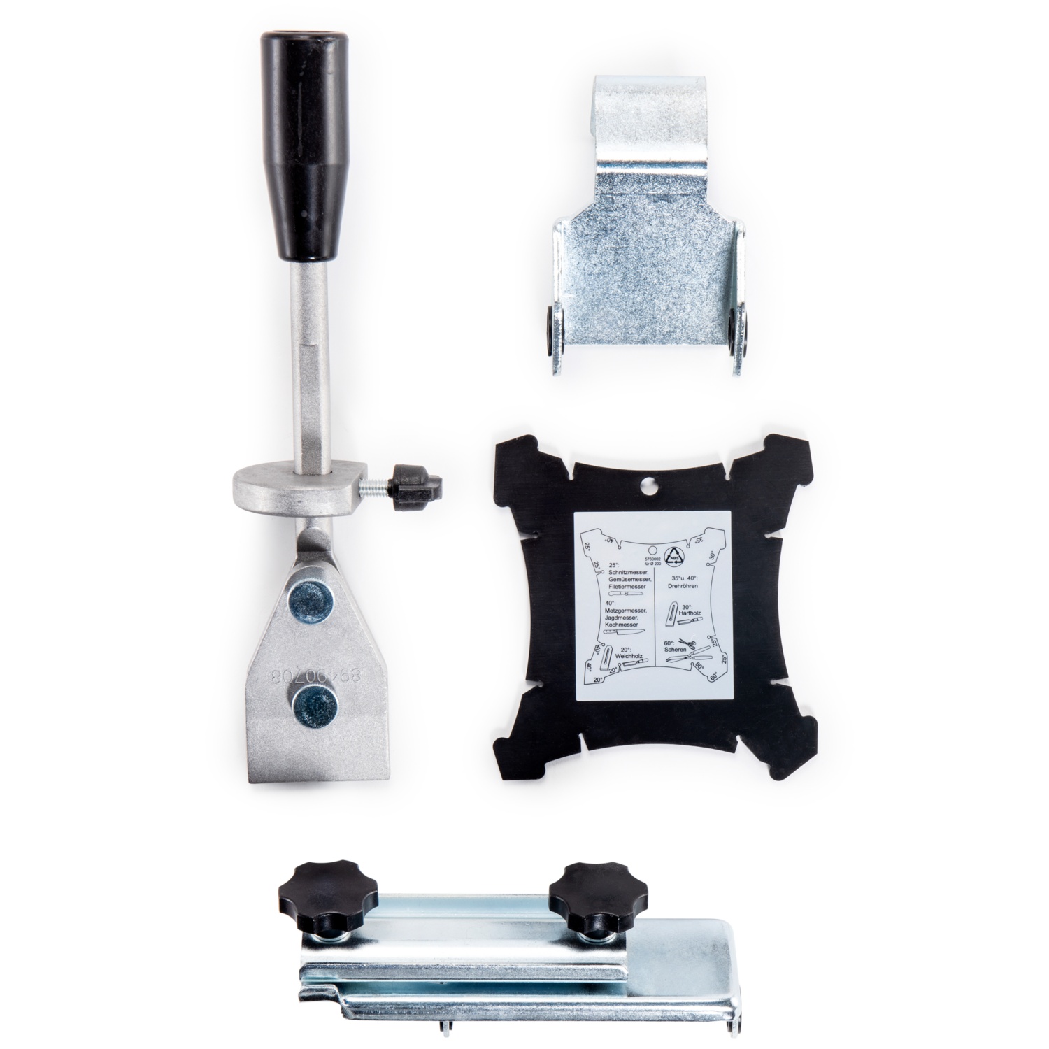 • inkl. 1 x Abziehpaste, 1 x Winkellehre, 1 x Universalvorrichtung für gerade Werkzeuge, 1 x Vorrichtung für Äxte, 1 x Vorrichtung für Messer, 1 x Werkzeugauflage bzw. Vorrichtungshalter