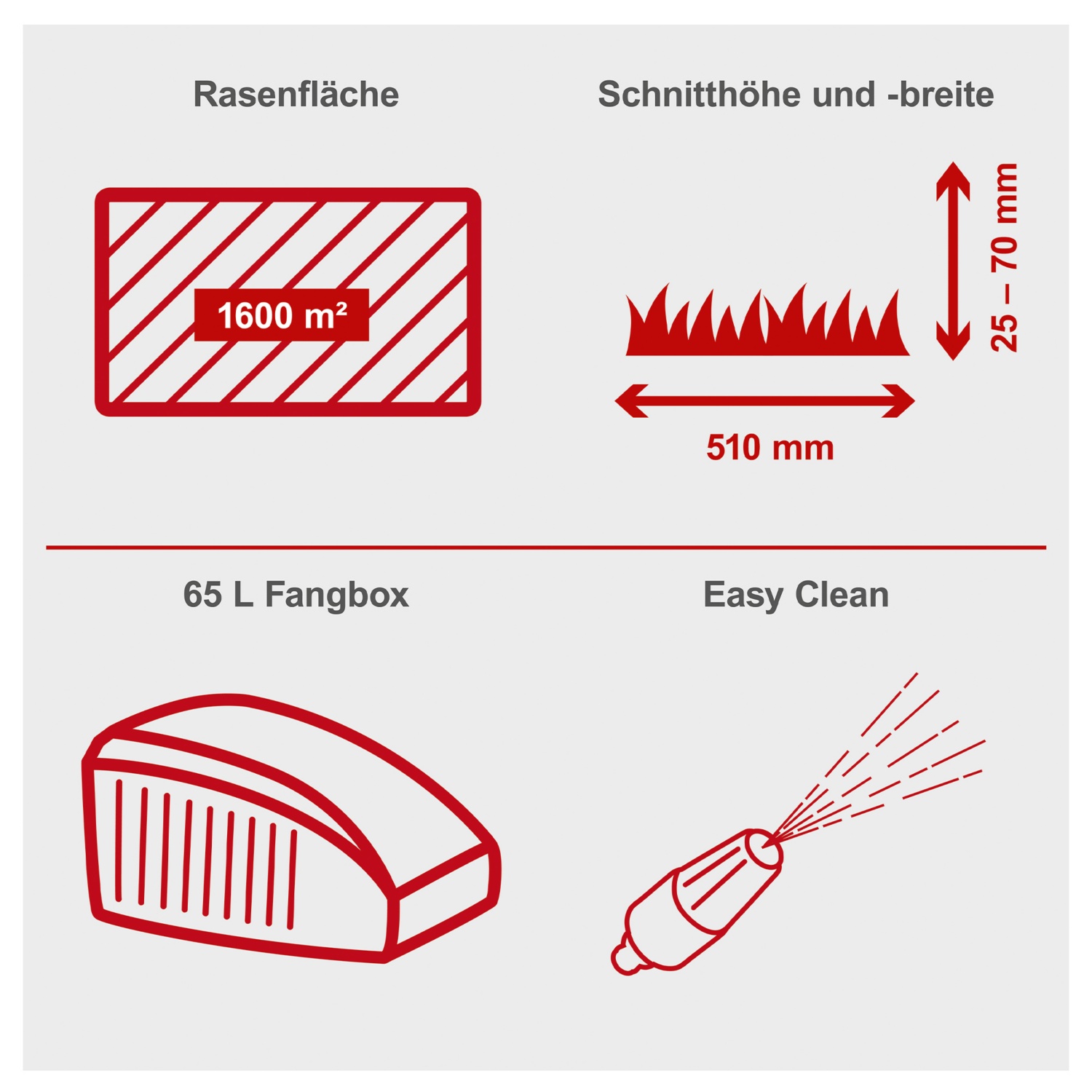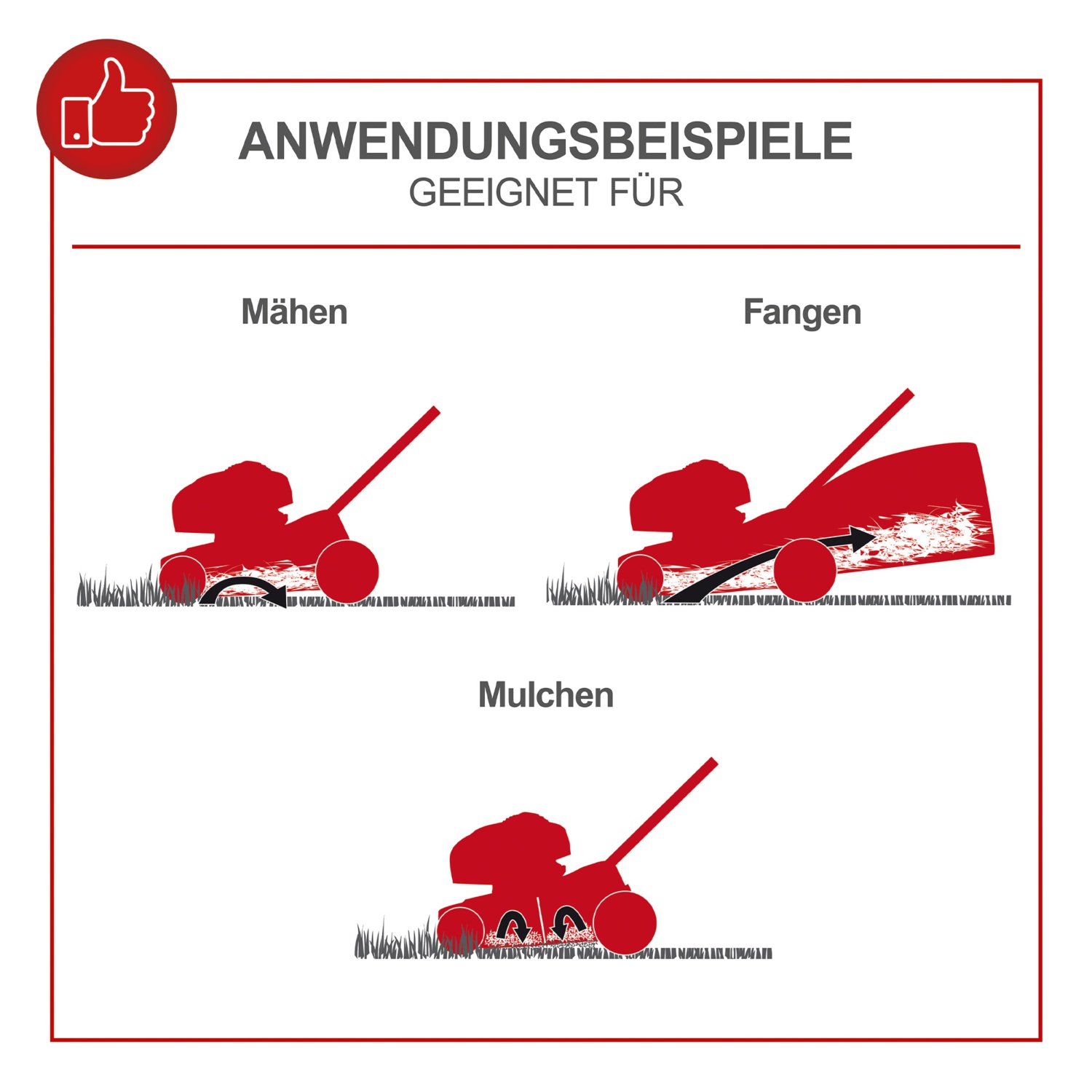 • 6-in-1: Mähen, Fangen, Fahren, Mulchen, Seitenauswurf, Reinigungsfunktion