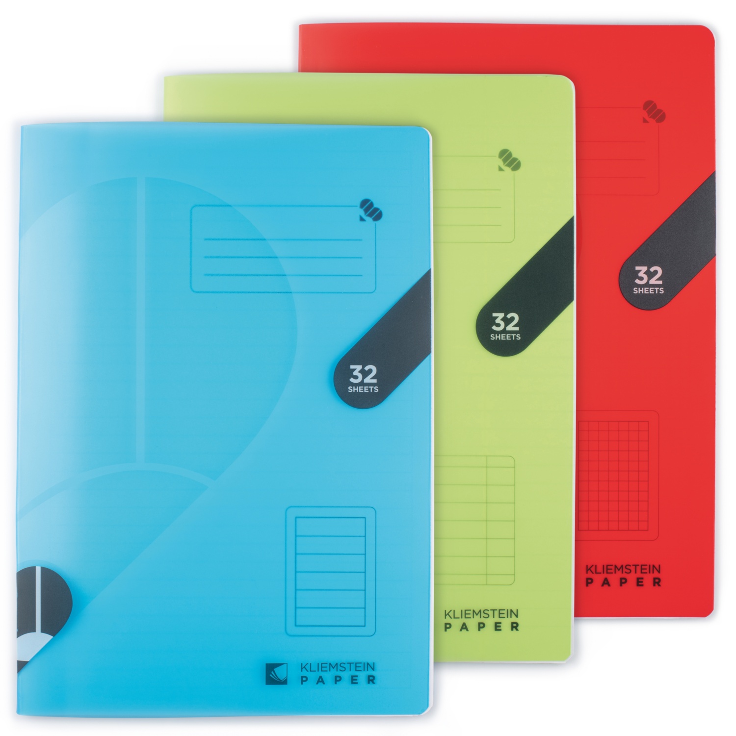 mit flexiblem PP-Umschlag aus 100 % Recycling, 32 Blatt 3 verschiedene Lineaturen: