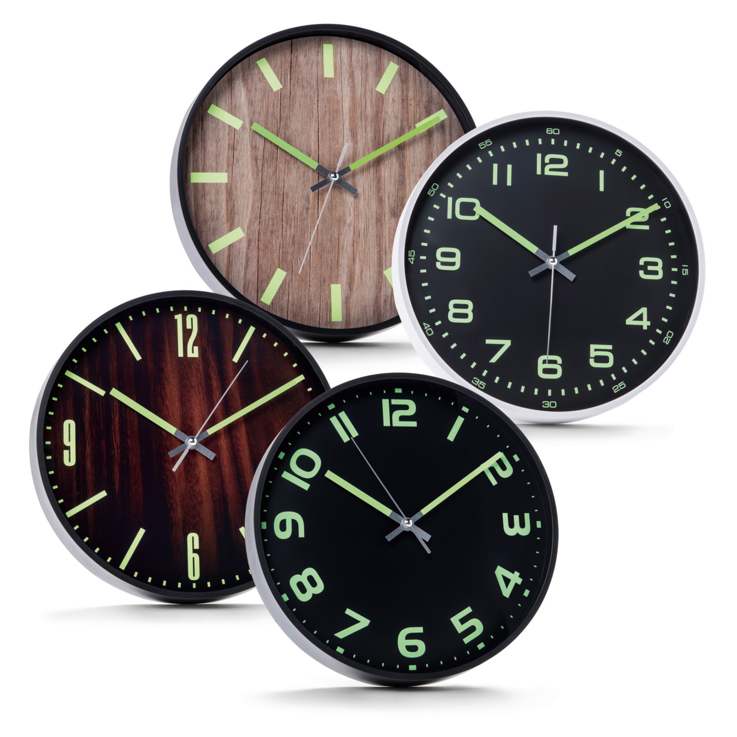 • lumineszierende Zahlen und Zeiger laden sich bei Tageslicht auf und leuchten ca. 6 Stunden bei Dunkelheit