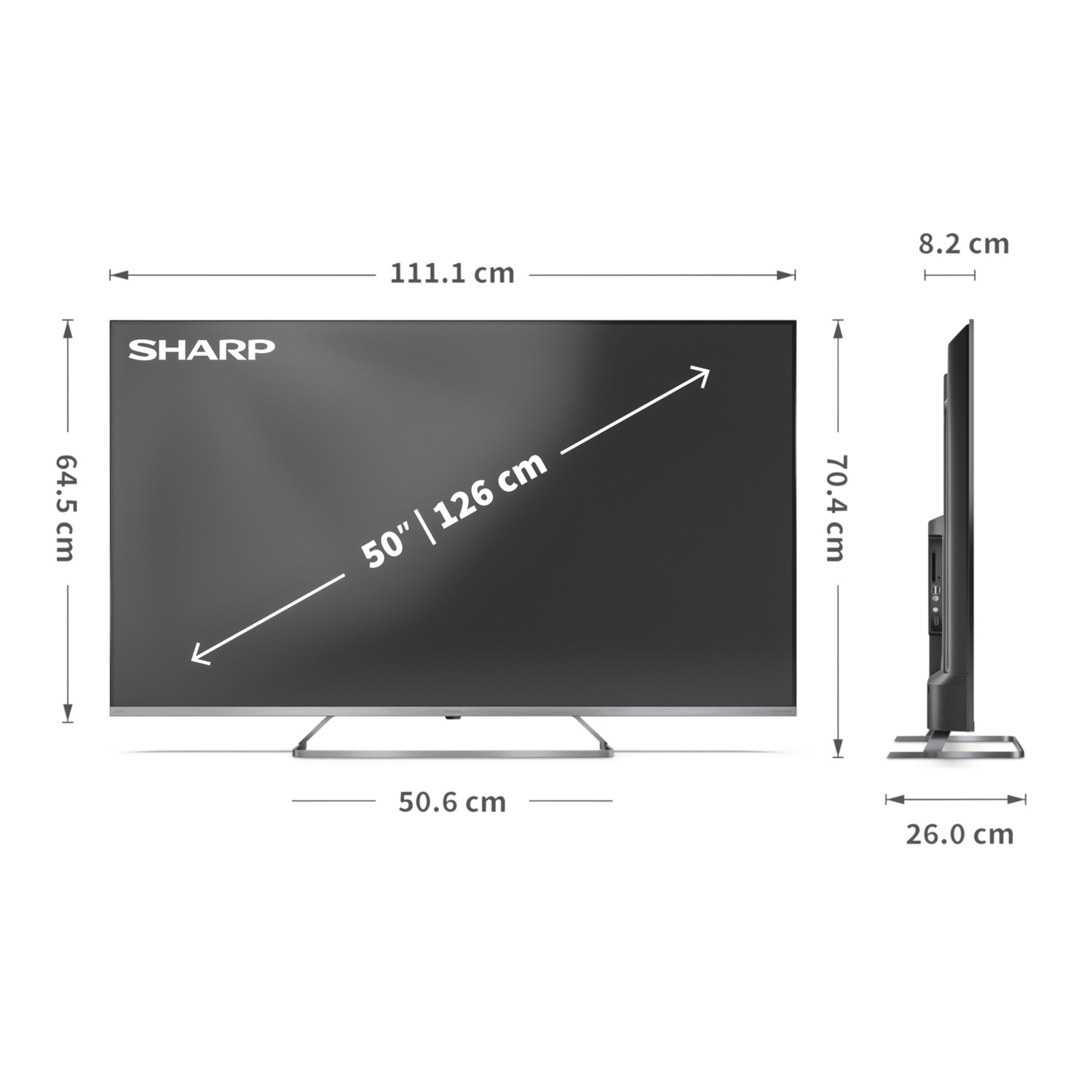 - ohne Standfuß: 1111 × 645 × 82 mm( B x H x T )