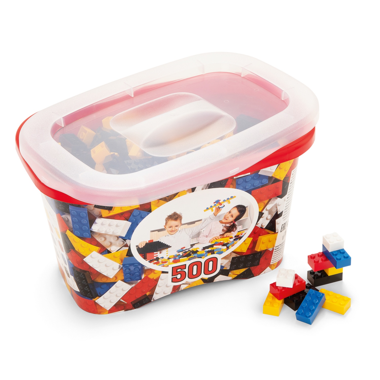 • 500 Teile: 4er und 8er Bausteine in fünf Farben