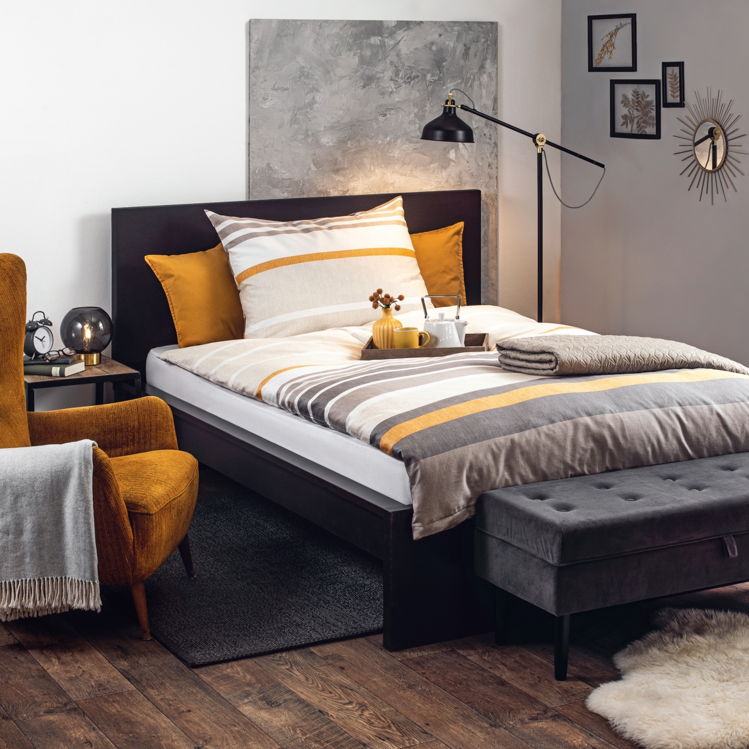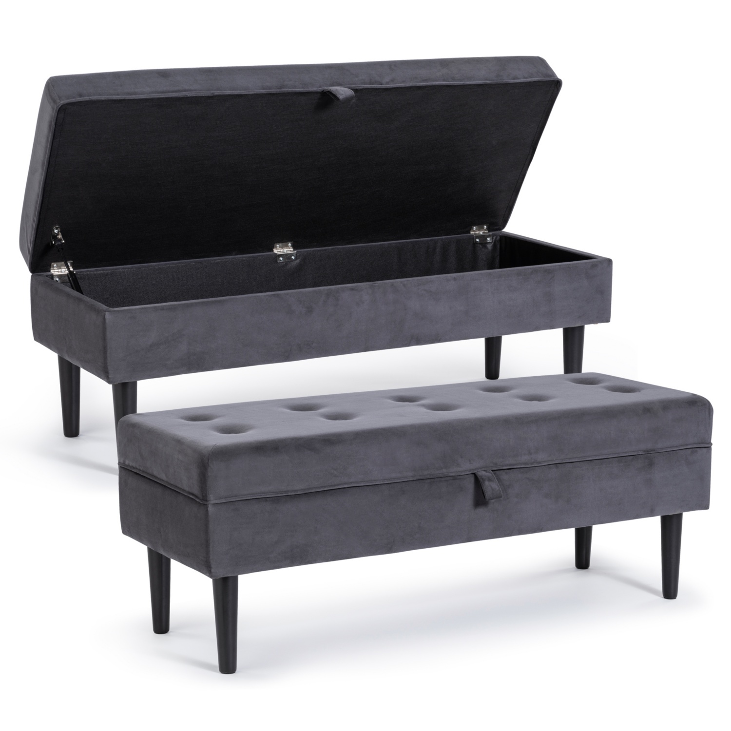 • Sitzbank aus Samt in der Farbe Anthrazit