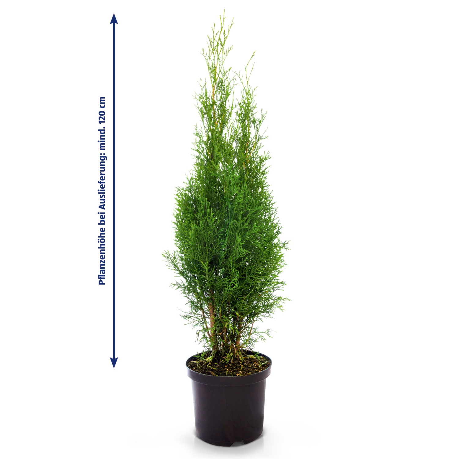 • im 27-cm-Topf, Pflanzenhöhe exkl. Topf: mind. 120 cm, Mindestabnahme 25 Stück, entspricht einer Heckenlänge von ca. 10 Metern