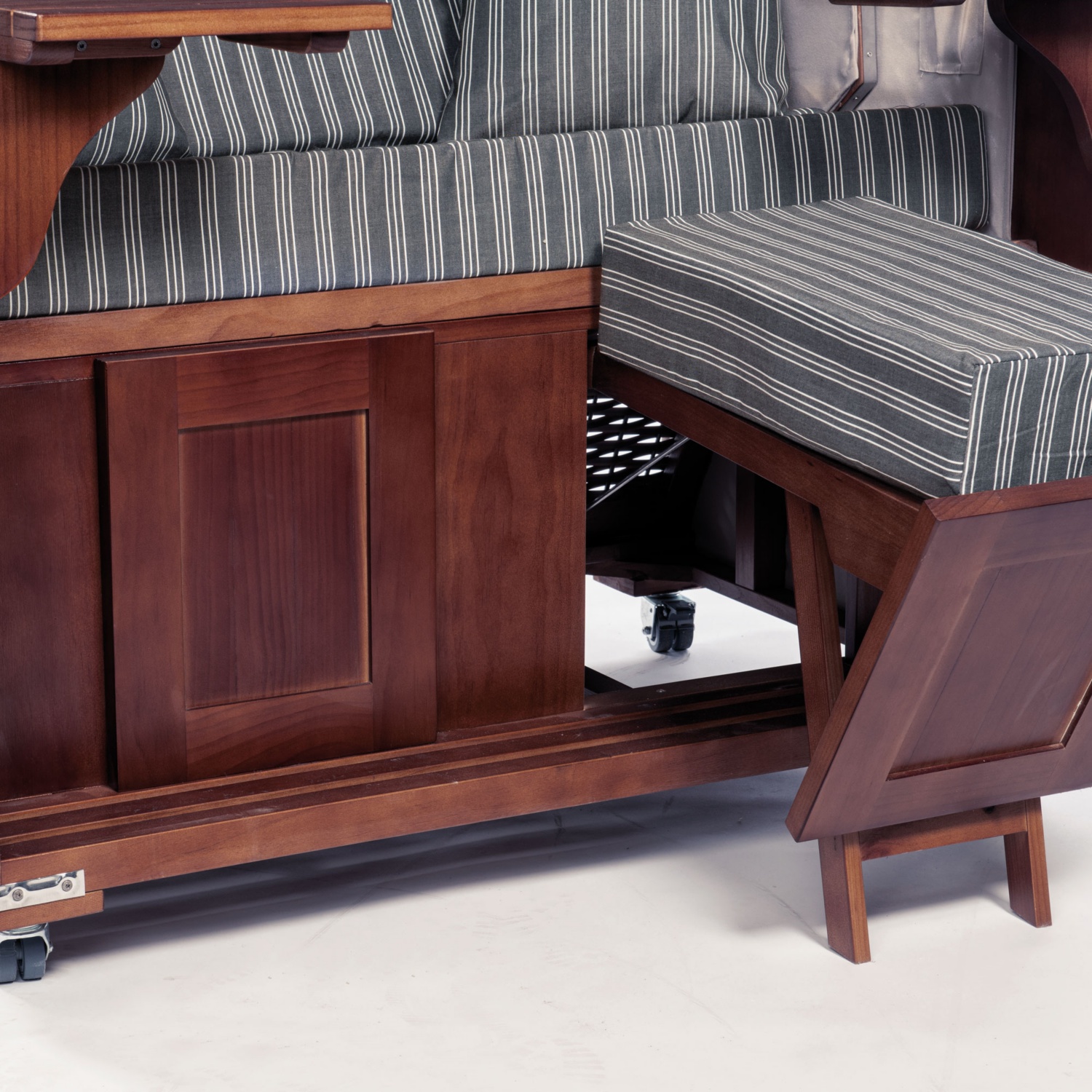 • lange Fußstützen zum Ausziehen mit extra dicken Fußkissen