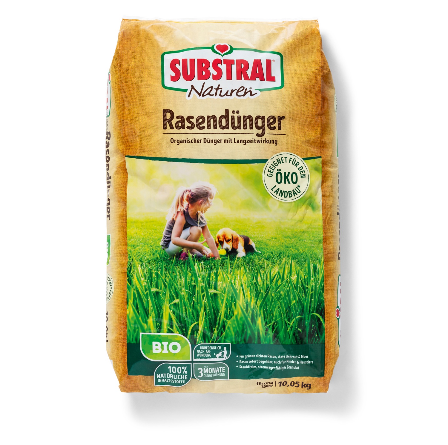 Organischer Rasendünger mit 100 % natürlichen Inhaltsstoffen. Für einen saftig grünen, kräftigen Rasen von Frühling bis Herbst.