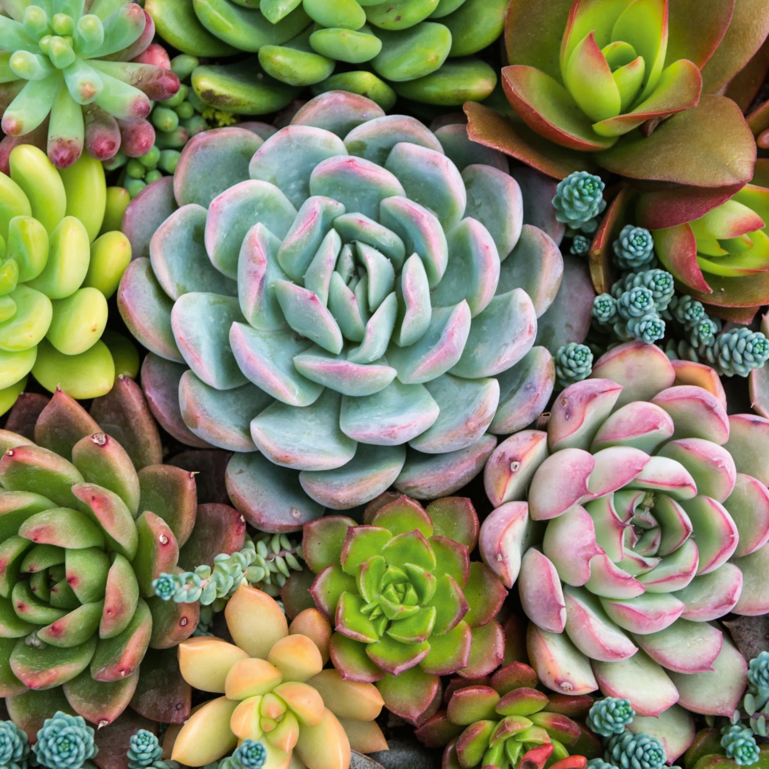 im 12-cm-Topf, diverse Sorten wie Dickblatt, Echeverie, Sedum etc.