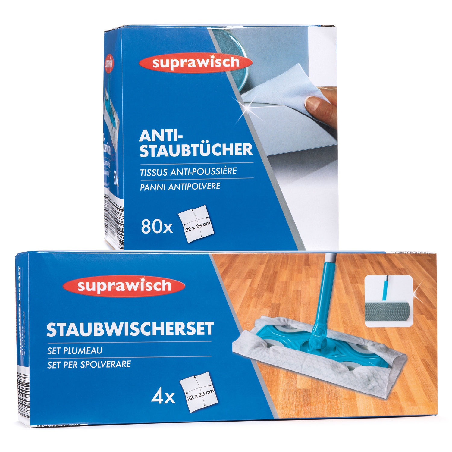 Staubwischerset: leicht zu führender Staubwischer mit 4 Anti-Staubtücher, durch 4 Klemmpunkte am Wischer zu befestigen oder